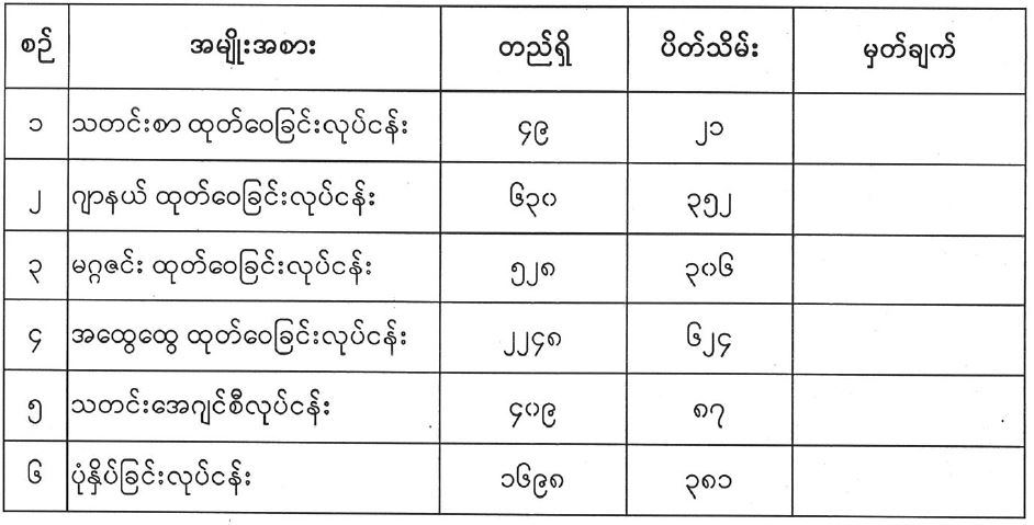 ပုံနှိပ်ခြင်းလုပ်ငန်း၊ ထုတ်ဝေခြင်းလုပ်ငန်း(သတင်းစာ၊ ဂျာနယ်၊ မဂ္ဂဇင်း၊ အထွေထွေ) သတင်းအေဂျင်စီလုပ်ငန်းများ ခွင့်ပြုထားရှိမှုနှင့် ထုတ်ဝေမှုအခြေအနေ (၃၀-၉-၂၀၂၄) 10/05/2024