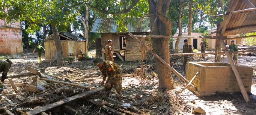 နေပြည်တော်ကောင်စီနယ်မြေအပါအဝင် တိုင်းဒေသကြီးနှင့် ပြည်နယ်များရှိ ရေကြီးရေလျှံမှုဖြစ်ပေါ်ခဲ့သည့် ရပ်ကွက်/ကျေးရွာများတွင် ကူညီကယ်ဆယ်ရေးလုပ်ငန်းများနှင့် ပြန်လည်ထူထောင်ရေးလုပ်ငန်းများကို အင်တိုက်အားတိုက်တက်ကြွစွာ ပူးပေါင်းဆောင်ရွက်ပေးလျက်ရှိရာ ယနေ့တွင်လည်း နေပြည်တော်ကောင်စီနယ်မြေတွင်လည်းကောင်း၊ ရှမ်းပြည်နယ်(တောင်ပိုင်း)၊ ကလောမြို့နယ်တွင်လည်းကောင်း စာသင်ကျောင်းများ၊ ဆေးရုံ၊ ဆေးခန်းများ၊ ဌာနဆိုင်ရာအဆောက်အဦများ၊ လမ်း၊ တံတားများ၊ ရပ်ကွက်၊ ကျေးရွာများအတွင်း၌ တင်ကျန်ခဲ့သည့်နုန်းများ၊ သစ်ပင်သစ်ကိုင်းများ ဖယ်ရှားပေးခြင်းအပါအဝင် အခြားလိုအပ်သည်များကို တပ်မတော်သားများ၊ မြန်မာနိုင်ငံရဲတပ်ဖွဲ့ဝင်များ၊ မီးသတ်တပ်ဖွဲ့ဝင်များ၊ ကြက်ခြေနီတပ်ဖွဲ့ဝင်များနှင့် လူမှုဝန်ထမ်းကယ်ဆယ်ရေးအဖွဲ့များက ဒေသခံပြည်သူများနှင့်ပူးပေါင်း၍ တက်ကြွစွာဆောင်ရွက်ပေးလျက်ရှိသည်။