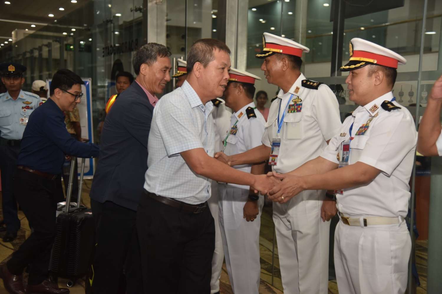 မြန်မာနိုင်ငံမှ ဒုတိယအကြိမ် လက်ခံကျင်းပသည့် (၁၈) ကြိမ်မြောက် အာဆီယံရေတပ်ဦးစီးချုပ်များအစည်းအဝေး 18th ASEAN Navy Chief's Meeting (18th ANCM) သို့ တက်ရောက်ရန် ဘရူနိုင်းနိုင်ငံ ယာယီရေတပ်ဦးစီးချုပ် Captain Haji Mohamad Sarif Pudin Bin Matserudin ဦးဆောင်သော ကိုယ်စားလှယ်အဖွဲ့၊ ကမ္ဘောဒီးယားနိုင်ငံ ဒုတိယရေတပ်ဦးစီးချုပ် Vice Admiral Sam Sokha ဦးဆောင်သောကိုယ်စားလှယ်အဖွဲ့၊ ဗီယက်နမ်နိုင်ငံ ဒုတိယရေတပ်ဦးစီးချုပ် Rear Admiral Pham Nhu Xuan ဦးဆောင်သော ကိုယ်စားလှယ်အဖွဲ့၊ လာအိုနိုင်ငံတပ်မတော်မှ ဒုတိယကြည်းတပ်ဦးစီးချုပ် Major General Vanthong Bouttavong ဦးဆောင်သော ကိုယ်စားလှယ်အဖွဲ့၊ ထိုင်းနိုင်ငံရေတပ်မှ Vice Admiral Puchong Pradittheera ဦးဆောင်သော ကိုယ်စားလှယ်အဖွဲ့၊ အင်ဒိုနီးရှားနိုင်ငံရေတပ်မှ Captain Taufik Darlem ဦးဆောင်သော ကိုယ်စားလှယ်အဖွဲ့၊ မလေးရှားနိုင်ငံရေတပ်မှ Captain Mohd Irwan Bin Che Mohd Rani ဦးဆောင်သော ကိုယ်စားလှယ်အဖွဲ့နှင့် ဖိလစ်ပိုင်နိုင်ငံရေတပ်မှ Colonel Jose P Navarro ဦးဆောင်သော ကိုယ်စားလှယ်အဖွဲ့တို့သည် အောက်တိုဘာ ၉ ရက် ညနေပိုင်းတွင် နေပြည်တော်သို့ ရောက်ရှိကြရာ စစ်ဦးစီးအရာရှိချုပ် (ရေ) ဗိုလ်ချုပ် အေးမင်းထွေး၊ တပ်မတော် (ရေ) မှ အရာရှိကြီးများနှင့် တာဝန်ရှိသူများက နေပြည်တော်လေဆိပ်တွင် ကြိုဆိုနှုတ်ဆက်ခဲ့ကြကြောင်း သတင်းရရှိသည်။