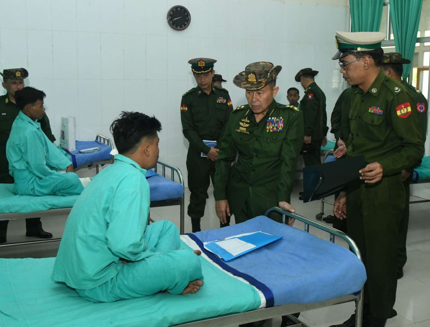 ဦးစွာ နိုင်ငံတော်စီမံအုပ်ချုပ်ရေးကောင်စီဒုတိယဥက္ကဋ္ဌ ဒုတိယတပ်မတော် ကာကွယ်ရေးဦးစီးချုပ်၊ ကာကွယ်ရေးဦးစီးချုပ်(ကြည်း)နှင့် အဖွဲ့ဝင်များသည် မုံရွာမြို့ရှိ နယ်မြေခံတပ်မတော်ဆေးရုံသို့ရောက်ရှိကြရာ ဆေးရုံတပ်မှူးနှင့် တာဝန်ရှိသူများက ကြိုဆိုနှုတ်ဆက်ကြသည်။
