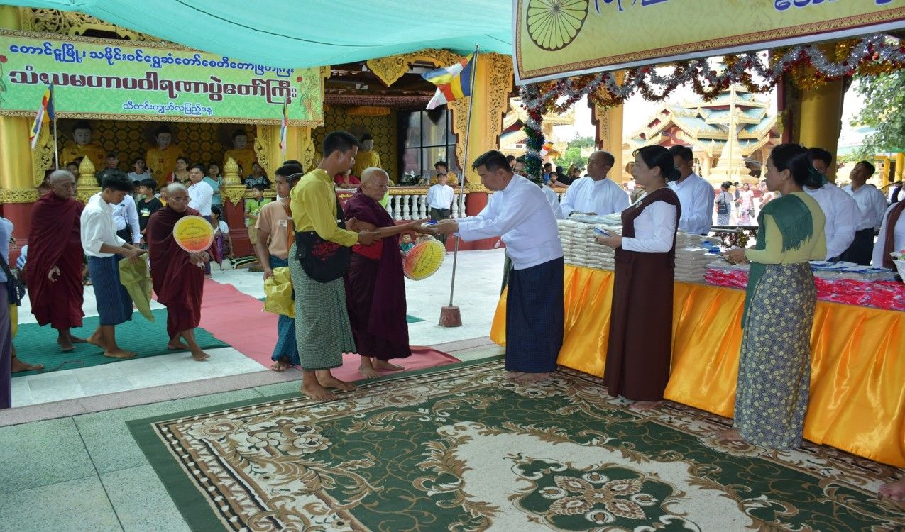 ဦးစွာ တိုင်းဒေသကြီးနှင့်ပြည်နယ် ဝန်ကြီးချုပ်များ၊ တိုင်းမှူးများနှင့် တက်ရောက်လာကြသူများက သံဃာတော်များထံမှ ငါးပါးသီလခံယူဆောက်တည်ကြပြီး သံဃာတော်များ ရွတ်ပွားချီးမြှင့်တော်မူသည့် ပရိတ်တရားတော်များကို နာယူကြသည်။ ထို့နောက် တိုင်းဒေသကြီးနှင့်ပြည်နယ် ဝန်ကြီးချုပ်များ၊ တိုင်းမှူးများနှင့် တက်ရောက်လာကြသူများက သံဃာတော်များနှင့် သာသနာနွယ်ဝင်သီလရှင်များအား ဆွမ်းဆန်တော်၊ ဆီ၊ ဆား၊ ဆွမ်း၊ ဆွမ်းဟင်း၊ လှူဖွယ်ပစ္စည်းများ၊ နဝကမ္မဝတ္ထုငွေများနှင့် ဝါဆိုသင်္ကန်းများကို သတ်မှတ်နေရာအသီးသီးမှ ဆက်ကပ်လောင်းလှူပူဇော်ကြသည်။