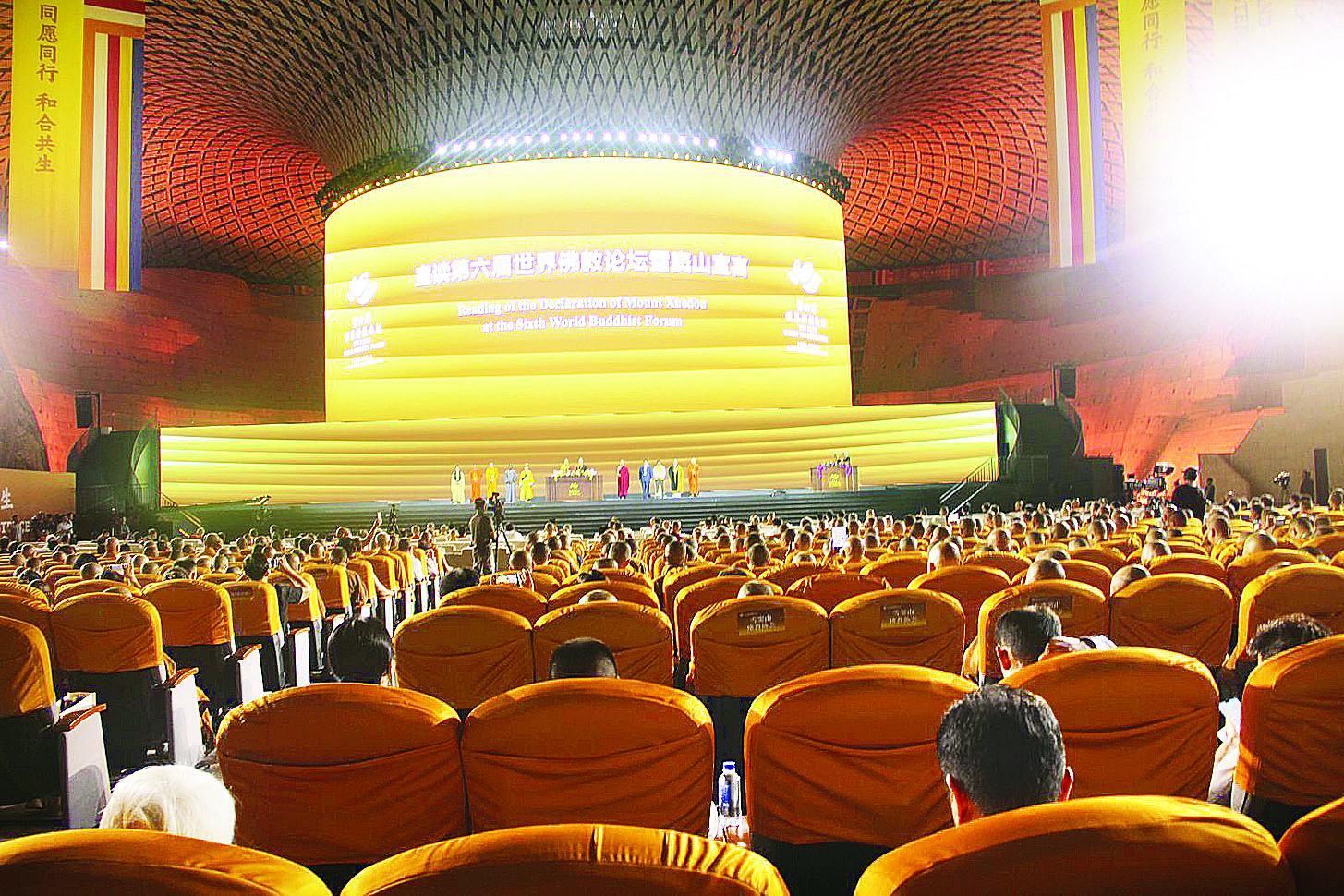 နိုင်ငံတော်သံဃမဟာနာယကအဖွဲ့ဥက္ကဋ္ဌ ဒေါက်တာဘဒ္ဒန္တစန္ဒိမာဘိဝံသ အမှူးပြုသော ဗုဒ္ဓဘာသာကိုယ်စားလှယ်အဖွဲ့နှင့် သာသနာရေးနှင့်ယဉ်ကျေးမှုဝန်ကြီးဌာန ဒုတိယဝန်ကြီး ဦးအေးထွန်းတို့သည် အောက်တိုဘာ ၁၅ ရက် မှ ၁၇ ရက်အထိ တရုတ်ပြည်သူ့သမ္မတနိုင်ငံ ကျဲ့ကျန်းပြည်နယ်၊ နင်းဘိုမြို့၊ ရွှယ်တုံးတောင်၌ ကျင်းပြုလုပ်သည့် ဆဋ္ဌမအကြိမ် ကမ္ဘာ့ဗုဒ္ဓဘာသာ ဖိုရမ်သို့တက်ရောက်ပြီး ခရီးစဉ်အတွင်း Howard Johnson ဟိုတယ် ဧည့်ခန်းမ၌ နိုင်ငံတော်သံဃမဟာ နာယကအဖွဲ့ဥက္ကဋ္ဌဆရာတော် အမှူးပြုသော ဆရာတော်ကြီးများသည် The Buddhist Association of China ၏ ဥက္ကဋ္ဌ ဆရာတော် Yan Jue အမှူးပြုသော ဆရာတော်ကြီးများနှင့် တွေ့ဆုံခဲ့သည်။