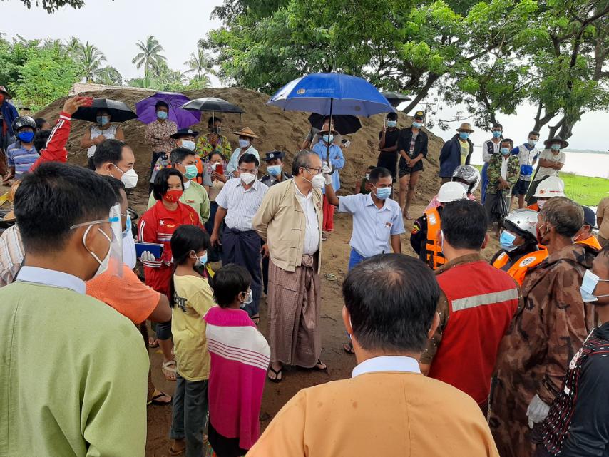 ထို့နောက် ပြည်နယ်ဝန်ကြီးချုပ်က မြို့နယ်အဆင့် တာဝန်ရှိသူများနှင့် ကျေးရွာအုပ်ချုပ်ရေးမှူး တို့အား စစ်တောင်းမြစ် ကမ်းနံဘေးနေထိုင်သူများကို အစားထိုးမြေကွက်ချထားပေးပြီး ဖြစ်သော်လည်း စီးပွားရေးအကျပ်အတည်းကြောင့် ပြောင်းရွေ့နိုင်ခြင်းမရှိသဖြင့် ယခုလို ဖြစ်စဉ်မျိုး ကြုံခဲ့ရကြောင်း၊ အစားထိုးမြေကွက်ရရှိပြီး ပြောင်းရွေ့ရန်ခက်ခဲသော အေးသီတာ ရပ်ကွက် မြောက်ဘက်ခြမ်း (ယနေ့အခင်းဖြစ်နေအိမ်နှင့် ဘေးချင်းကပ်) ရှိ နေအိမ်(၂) လုံးအား အိမ်(၁)လုံးလျှင် (၃) သိန်းကျပ်စီ ထောက်ပံ့ပေးမည်ဖြစ်ကြောင်း၊ အေးသီတာ တောင်ဘက် ပိုင်းရှိ စစ်တောင်းမြစ်ကမ်းနေအိမ် (၆) လုံးကိုလည်း ပြောင်းရွေ့မည်ဆိုပါက ထောက်ပံ့ငွေ (၄)သိန်းကျပ် အားပေး၍ မြေကွက် ချထားပေးသောနေရာသို့ ပြောင်းရွေ့ရန်ပြောကြားပြီး ပြောင်းရွှေ့မှုမပြုပါက ဥပဒေအရ အရေးယူဆောင်ရွက်နိုင်ရေးတို့ကို လမ်းညွှန်မှာကြားခဲ့ ကြောင်းသိရသည်။