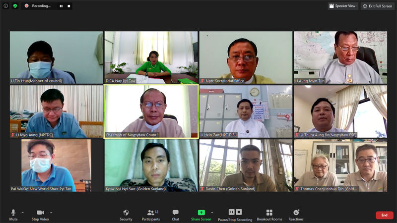 အစည်းအဝေးသို့ ကောင်စီရင်းနှီးမြှုပ်နှံမှုကော်မတီ ဥက္ကဋ္ဌ၊ နေပြည်တော်ကောင်စီ ဥက္ကဋ္ဌ ဒေါက်တာမျိုးအောင်၊ ကော်မတီအဖွဲ့ဝင် များဖြစ်ကြသည့် နေပြည်တော်ကောင်စီဝင် ဦးအောင်မြင်ထွန်း၊ ဦးတင်ထွန်း၊ နေပြည်တော်ကောင်စီအတွင်းရေးမှူး ဦးခင်မောင်လေးနှင့် တာဝန် ရှိသူများ၊ သက်ဆိုင်ရာရင်းနှီးမြှုပ်နှံမှု လုပ်ငန်းရှင်များ က Video Conferencing စနစ်အသုံးပြု၍ ပါဝင်ဆွေးနွေးခဲ့ကြကြောင်း သိရသည်။