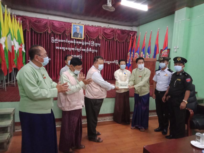 ဆက်လက်ပြီး ဝန်ကြီးချုပ်နှင့်အဖွဲ့သည် ချင်းရွှေဟော်မြို့ ကိုဗစ်-၁၉ ရောဂါ ကာကွယ်ထိန်းချုပ် ကုသရေး လုပ်ငန်း ကော်မတီ အတွက် ငွေကျပ်သိန်း(၂၀)၊ နှာခေါင်းစည်း(Mask) (၂၅၀၀)ခု နှင့် လက်အိတ်အစုံ(၅၀၀)ခု တို့ကို ထောက်ပံ့ပေးအပ်ခဲ့ရာ ချင်းရွှေဟော်မြို့ ကိုဗစ်-၁၉ ရောဂါကာကွယ်ထိန်းချုပ်ကုသရေးလုပ်ငန်းကော်မတီမှ လက်ခံရယူခဲ့ကြောင်း သိရှိရသည်။