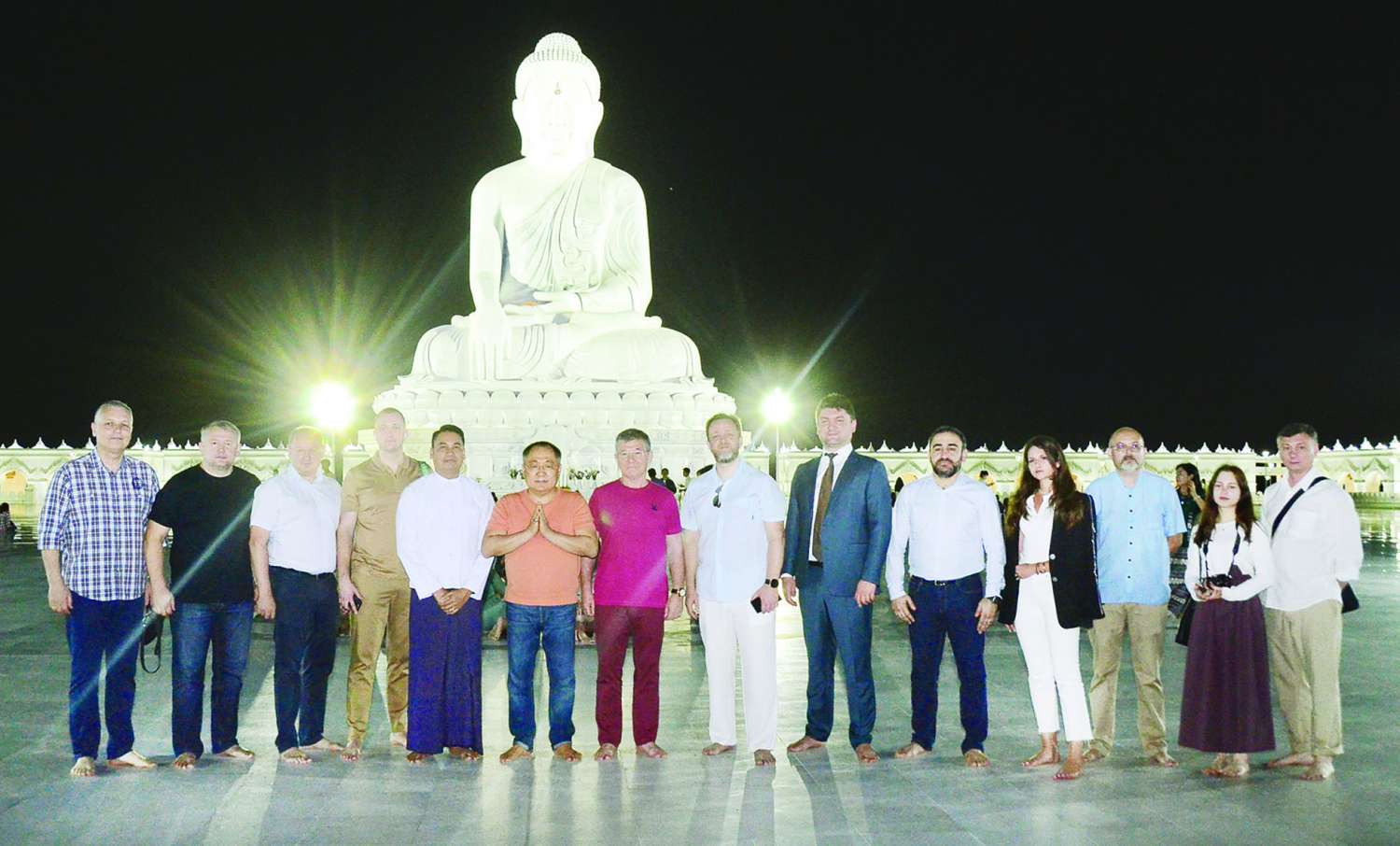 ထို့နောက် ဧည့်သည်တော်အဖွဲ့သည် ကမ္ဘာပေါ်ရှိ ထိုင်တော်မူကျောက်ဆစ်ဗုဒ္ဓရုပ်ပွားတော်များအနက် ဉာဏ်တော်အမြင့်ဆုံးဖြစ်သည့် မာရဝိဇယ ဗုဒ္ဓရုပ်ပွားတော်မြတ်ကြီးအား ပန်း၊ ရေချမ်းနှင့် ဆီမီးများ ကပ်လှူဖူးမြော်ကြည်ညိုကြပြီး ဗုဒ္ဓဥယျာဉ်တော်အတွင်းခမ်းနားထည်ဝါစွာ တည်ထားပူဇော်ထားသော အဂ္ဂါဓိပတိ သာသနာ့ဗိမာန်တော်ကြီးနှင့် အဋ္ဌကထာဋီကာကျမ်းစာများကို စကျင်ကျောက်များပေါ်၌ ခေတ်မီကိရိယာများအသုံးပြု၍ ပါဠိအက္ခရာ၊ Romanize Language တို့ဖြင့် ထွင်းထုတည်ဆောက်ထားသည့် ကျောက်စာရုံစေတီတော်များကို စိတ်ဝင်တစား လေ့လာဖူးမြော်ကြည်ညိုခဲ့ကြကြောင်း သိရသည်။