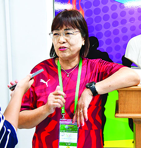 အားကစားကွင်းဆိုရင်လည်း အောင်ဆန်းအားကစားကွင်းကြီးဟာ ကျောက်မီးသွေးကွင်းကြီး၊ ဖိနပ်ဆိုရင်လည်း ရိုးရိုးဖိနပ်သံအရှည်ကြီးတွေနဲ့ ကြိုးစားခဲ့ရတယ်။ အခုခေတ် ကစားသမားတွေဆိုရင် နိုင်ငံတကာအဆင့်မီကွင်းကြီးလိုပဲ မြန်မာပြည်မှာရှိနေ ပြီဆိုတော့ အကုန်လုံးကတန်းတူ ယှဉ်ပြိုင်လို့ရတယ်။ ကျွန်မတို့တုန်းက မိုးရေထဲမှာဗွက်တွေနဲ့ ကျောက်မီးသွေးကွင်းကြီးထဲမှာ ကိုယ့်နိုင်ငံအတွက်ကို တော်တော်လေး ကြိုးစားခဲ့ရတယ်။ ကျွန်မတစ်ယောက်တည်းနဲ့ တစ်နှစ်ကို အားကစားနည်းလေးခုမှာ ရွှေတံဆိပ်လေးခုနဲ့ အကောင်းဆုံး ကစားသမားဆုတောင်ရခဲ့ဖူးတယ်။ အခုက အသင်းတစ်ခုလုံးမှာတောင် ရွှေတံဆိပ်တစ်ခု မရနိုင်ဘူးဆိုတော့ တော်တော်လေးကိုလုပ်ရမှာပါ။ ကျွန်မတို့လည်း အသက်ကြီးပြီဆိုတော့ တတ်နိုင်သလောက်ပံ့ပိုးပေးပါတယ်။ စံချိန်တွေတက်လာအောင်၊ အောင်မြင်မှုတွေရအောင်ဆိုရင် ကိုယ်တိုင်ကကြိုးစားအား ထုတ်မှုရှိမှရမယ်။ အခုလို အမျိုးသား အားကစားပွဲတော်တွေ လုပ်တဲ့အတွက် ထူးချွန်တဲ့ကစားသမားတွေ ထွက်လာမယ်။ အခုဆိုရင် ကျောင်းတွေကနေလည်း ကစားသမားတွေထွက်ပေါ်လာတယ်။ လူငယ်မျိုးဆက်သစ် ကစားသမားတွေ မွေးထုတ်နိုင်တယ်။ အခုဆိုရင်ဝန်ကြီးဌာနတွေက ကလေးတွေအတွက်ကိုလည်း တစ်ဖက်တစ်လမ်းကနေ လေ့ကျင့်ပေးနေတယ်။ မသန်စွမ်းမှာဆိုလည်း အမြဲတမ်းလေ့ကျင့်ပေး တယ်။ အခုဆိုလည်း နိုင်ငံတော်ကနေပြီးတော့ အားကစားဝတ်စုံကအစ နိုင်ငံခြားသွားတဲ့အခါ အစစအရာရာနိုင်ငံတကာနဲ့ တန်းတူဖြစ်လာတယ်။ အခုကတော့ အလားအလာရှိတဲ့ ကစားသမားတွေအနေနဲ့ ဝန်ကြီးဌာနတွေမှာ အလုပ်တွေရကြတယ်။ အဲဒီကနေတစ်ဆင့် လေ့ကျင့်ချိန်တွေရလာတယ်။ စိတ်ဝင်စားလာတယ်။ လေ့ကျင့်နေမှလည်း အားကစားဆိုတာတိုးတက်တာ၊ စိတ်ဓာတ်ရှိမှလည်းလုပ်နိုင်တာ။ အားကစားဆိုတာ ကိုယ်ကြိုးစားရင်ကြိုးစားသလောက် အောင်မြင် တယ်။ SEA Games မှာ ရွှေတံဆိပ်ဆုရတယ်ဆိုရင် နိုင်ငံတော်အနေနဲ့လည်း ဆုကြေးတွေကိုပထမဆု ကျပ်သိန်း ၃၀၀၊ ဒုတိယဆု ကျပ်သိန်း ၂၀၀ ရတဲ့အတွက် တချို့ဆိုရင် အဆင်ပြေလာကြပြီ။ အခုဆိုရင် မသန်စွမ်းမှာလေ့ကျင့်ပေးနေတဲ့ ကစားသမားတွေဆိုရင် ကိုယ်လက်အင်္ဂါ မသန်စွမ်းပေမယ့် စိတ်ဓာတ်ပြင်းတော့ ခိုင်းသလောက်လုပ်နိုင်တယ်။ ကျိုက္ကဆံမှာ လေ့ကျင့်ပေးချိန်မှာဆိုရင် ခြေထောက်မသန်စွမ်းပေမယ့် လူကောင်းတွေနဲ့ ရင်ပေါင်တန်းတဲ့ အထိ လုပ်ကြတယ်။ နောက်နှစ် ကျရင်လည်း ထိုင်းနိုင်ငံမှာပါရာ ဂိမ်းရှိတဲ့အတွက် ဆုတံဆိပ်တွေအများကြီးရအောင် နိုင်ငံတော်အတွက် တစ်ဖက်တစ်လမ်းကနေ တတ်နိုင်သလောက် မသန်စွမ်း အားကစားမှာ နည်းပြလုပ်ပြီး လေ့ကျင့်ပေးနေပါတယ်။