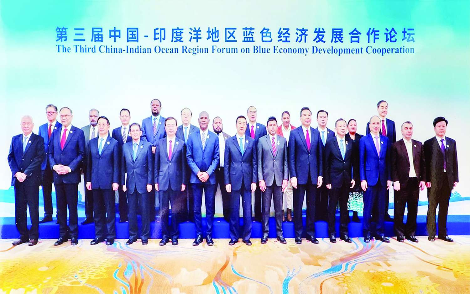 ဒီဇင်ဘာ ၁၆ ရက် နံနက်ပိုင်းတွင် ဖိုရမ်သို့တက်ရောက်လာကြသည့် ပြည်ထောင်စုဝန်ကြီးအပါအဝင် နိုင်ငံအသီးသီးမှ အဆင့်မြင့်ကိုယ်စားလှယ်များနှင့် တရုတ်ပြည်သူ့နိုင်ငံရေးအတိုင်ပင်ခံကွန်ဖရင့် အမျိုးသားကော်မတီဒုတိယဥက္ကဋ္ဌ မစ္စတာဝမ်ရုံ ဦးဆောင်သည့် တရုတ်နိုင်ငံအစိုးရ အဆင့်မြင့်ကိုယ်စားလှယ်များအကြား တွေ့ဆုံပွဲကျင်းပခဲ့သည်။ ဆက်လက်၍ အပြာရောင်အိန္ဒိယသမုဒ္ဒရာ၏ အနာဂတ်အလားအလာ- ကမ္ဘာ့တောင်ခြမ်း၏ ဖွံ့ဖြိုးတိုးတက်မှုဆိုင်ရာ လက်တွေ့လုပ်ငန်း (Future of the Blue Indian Ocean – Development Practice of the Global South) ခေါင်းစဉ်ဖြင့်ကျင်းပသည့် တတိယအကြိမ် တရုတ်-အိန္ဒိယ သမုဒ္ဒရာဒေသ အပြာရောင်စီးပွားရေးဖွံ့ဖြိုးတိုးတက်မှု ပူးပေါင်းဆောင်ရွက်ရေးဖိုရမ်၏ ဖွင့်ပွဲအခမ်းအနားသို့ တက်ရောက် ခဲ့သည်။