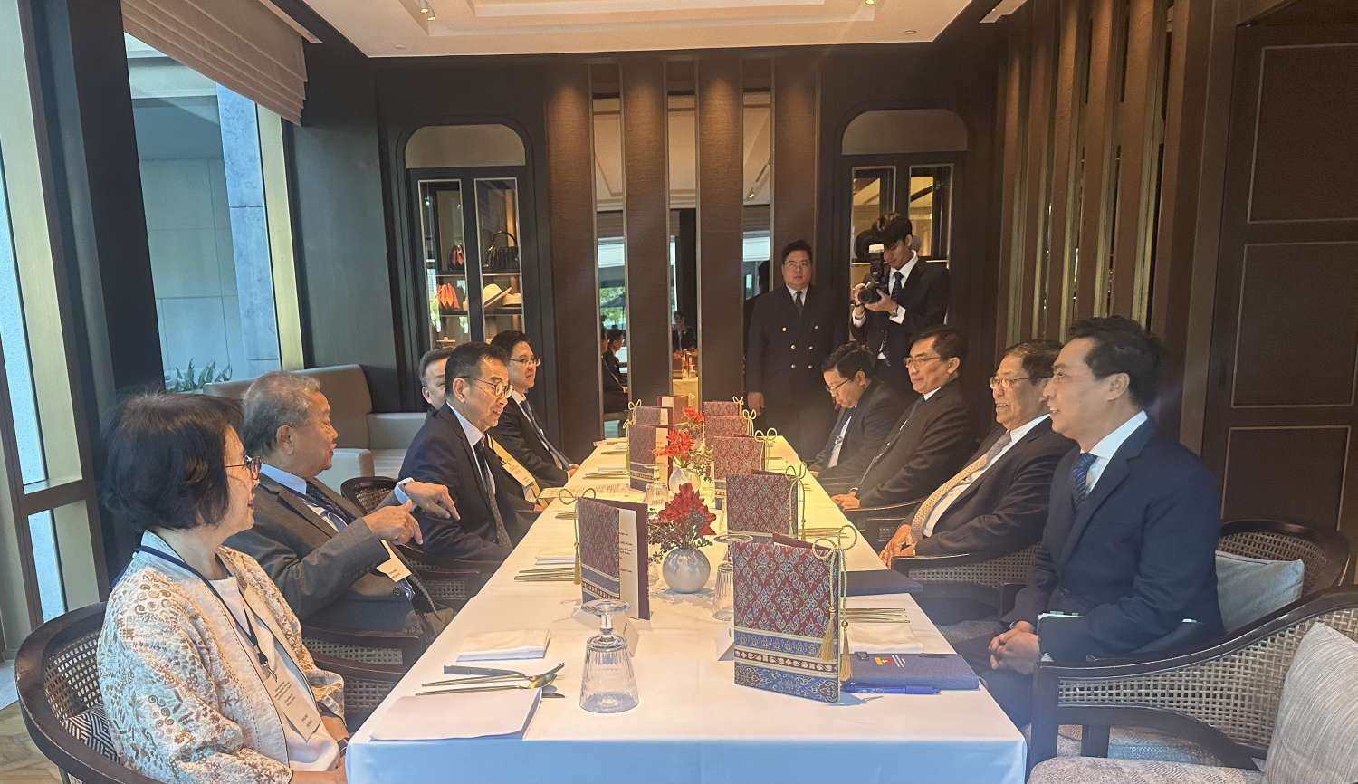 အိမ်ရှင် ထိုင်းနိုင်ငံ၊ နိုင်ငံခြားရေးဝန်ကြီးဖြစ်သူ မစ္စတာ မာရစ်ဆတ်ငိုရမ်ဖုန်က ဆွေးနွေးပွဲသို့ ပါဝင်တက်ရောက်လာကြသည့် ကိုယ်စားလှယ်အဖွဲ့ခေါင်းဆောင်များနှင့် ကိုယ်စားလှယ်များကို ၁၉-၁၂-၂၀၂၄ ရက် နေ့လယ်ပိုင်းတွင် ဗန်ကောက်မြို့ရှိ Capella ဟိုတယ်၌ နေ့လယ်စာဖြင့် တည်ခင်းဧည့်ခံခဲ့သည်။