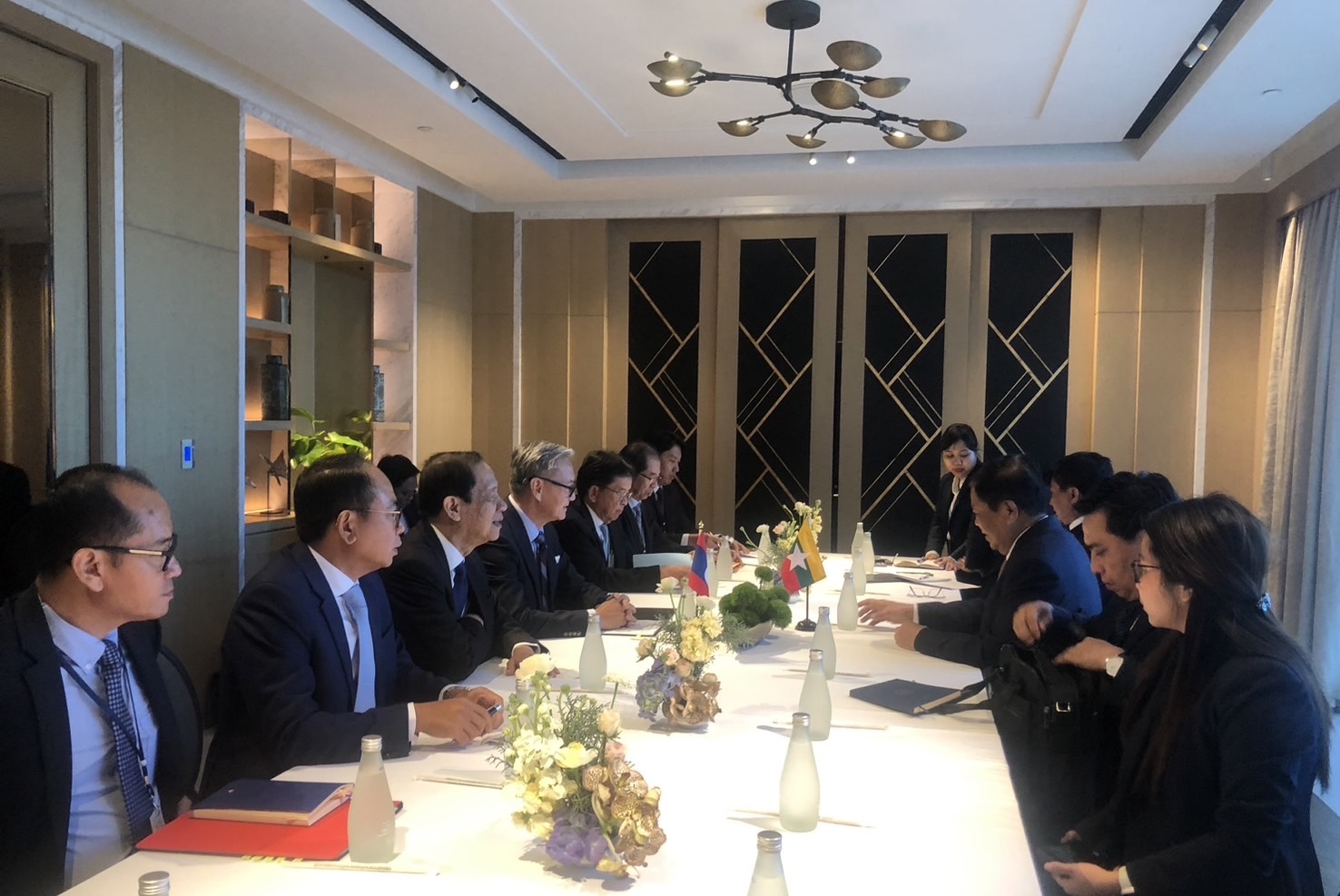 ဒုတိယဝန်ကြီးချုပ်နှင့် နိုင်ငံခြားရေးဝန်ကြီးဌာန ပြည်ထောင်စုဝန်ကြီးသည် ဆွေးနွေးပွဲအတွင်း နိုင်ငံတော်အစိုးရ၏ ငြိမ်းချမ်းရေး၊ ဖွံ့ဖြိုးတိုးတက်ရေးနှင့် ဒီမိုကရေစီဖော်ဆောင်ရေးအတွက် ကြိုးပမ်းဆောင်ရွက်နေမှုများနှင့် မြန်မာနိုင်ငံ၏ လက်ရှိဖြစ်ပေါ်တိုးတက်မှုအခြေအနေများကို တက်ရောက်လာကြသည့်နိုင်ငံများမှ ကိုယ်စားလှယ်အဖွဲ့ခေါင်းဆောင်များအား ရှင်းလင်းပြောကြားခဲ့သည်။