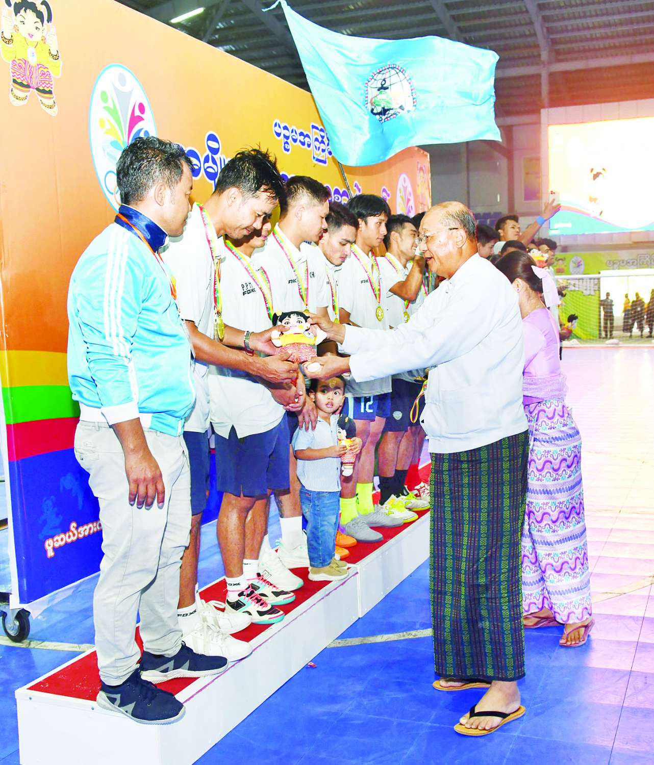 ယင်းနောက် ဆုချီးမြှင့်ပွဲ အခမ်းအနားကို ဆက်လက်ကျင်းပရာ ပြည်ထဲရေးဝန်ကြီးဌာန အမြဲတမ်းအတွင်းဝန် ဦးခိုင်ထွန်းဦးက အမျိုးသမီးဘော်လီဘောပြိုင်ပွဲတွင် တတိယဆုရရှိသည့် အားကစားနှင့်လူငယ်ရေးရာဝန်ကြီးဌာနအသင်းကိုလည်းကောင်း၊ နယ်စပ်ရေးရာဝန်ကြီးဌာန ဒုတိယဝန်ကြီး ဗိုလ်ချုပ်ဖြိုးသန့်က အမျိုးသားဘော်လီဘောပြိုင်ပွဲတွင် တတိယဆုရရှိသည့် ကာကွယ်ရေးဝန်ကြီးဌာနအသင်းကိုလည်းကောင်း၊ ပြည်ထဲရေးဝန်ကြီးဌာန ဒုတိယဝန်ကြီး ဗိုလ်ချုပ်တိုးရီက အမျိုးသမီးဘော်လီဘောပြိုင်ပွဲတွင် ဒုတိယဆုရရှိသည့် ပြည်ထဲရေးဝန်ကြီးဌာနအသင်းကိုလည်းကောင်း တစ်ဦးချင်းဂုဏ်ပြုဆုတံဆိပ်နှင့် အမျိုးသားအားကစားပွဲတော် အထိမ်းအမှတ်အရုပ်များ ပေးအပ်ချီးမြှင့်ကြသည်။