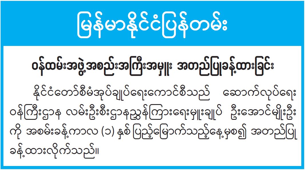 ဦးစီးဌာနနှင့် လုပ်ငန်းများ၏ ကြေညာချက်များ