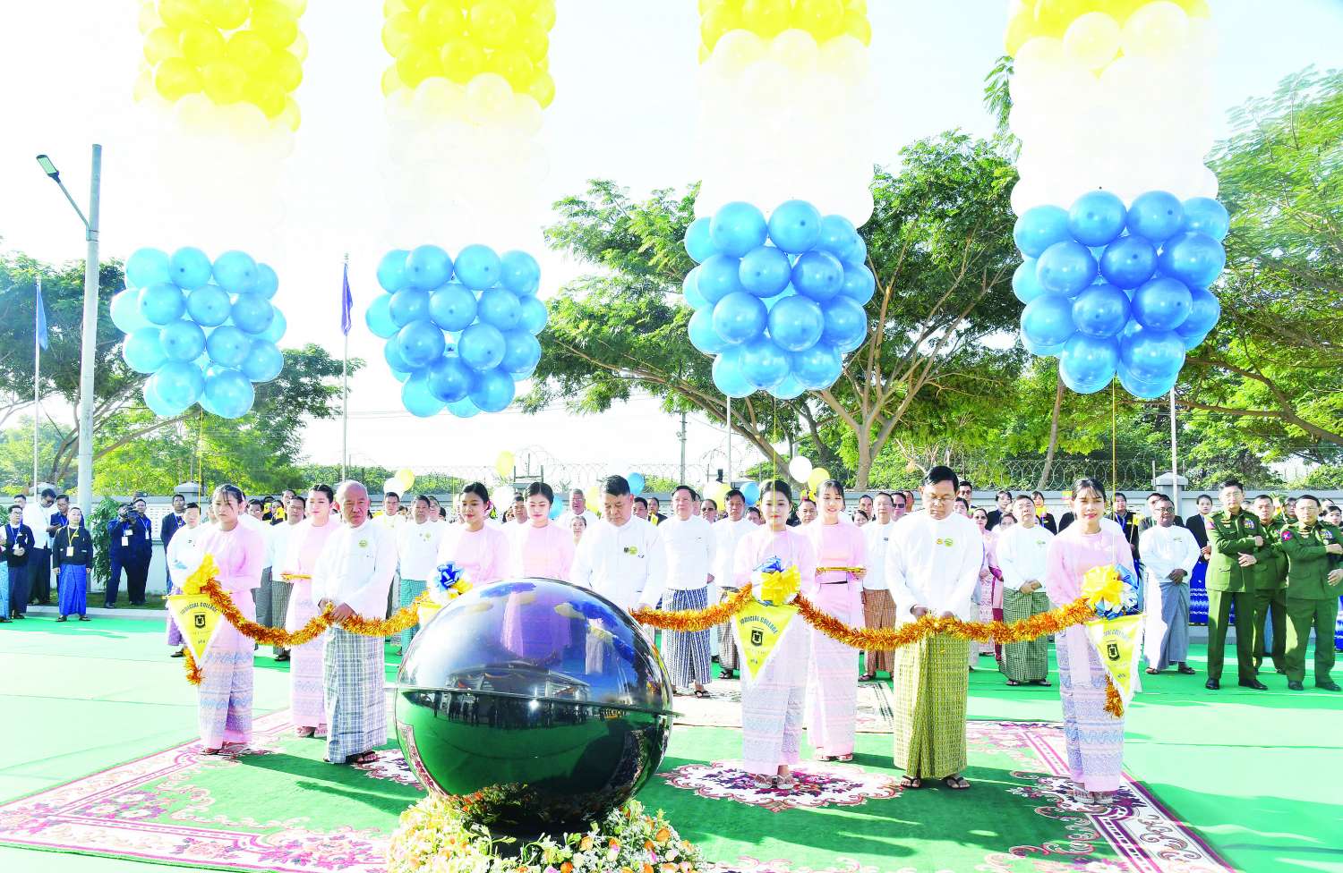 ဦးစွာ ပြည်ထောင်စုတရားသူကြီးချုပ် ဦးသာဌေး၊ နိုင်ငံတော်ဖွဲ့စည်းပုံ အခြေခံဥပဒေဆိုင်ရာခုံရုံးဥက္ကဋ္ဌ ဦးအောင်ဇော်သိန်းနှင့် ဆောက်လုပ်ရေးဝန်ကြီးဌာန ပြည်ထောင်စုဝန်ကြီး ဦးမျိုးသန့်တို့က Judicial College အဆောက်အဦအသစ်အား ဖဲကြိုးဖြတ်ဖွင့်လှစ်ပေးသည်။