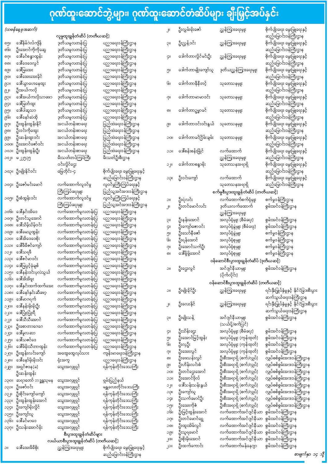 ဝန်ကြီးဌာန ကြေညာချက်များ