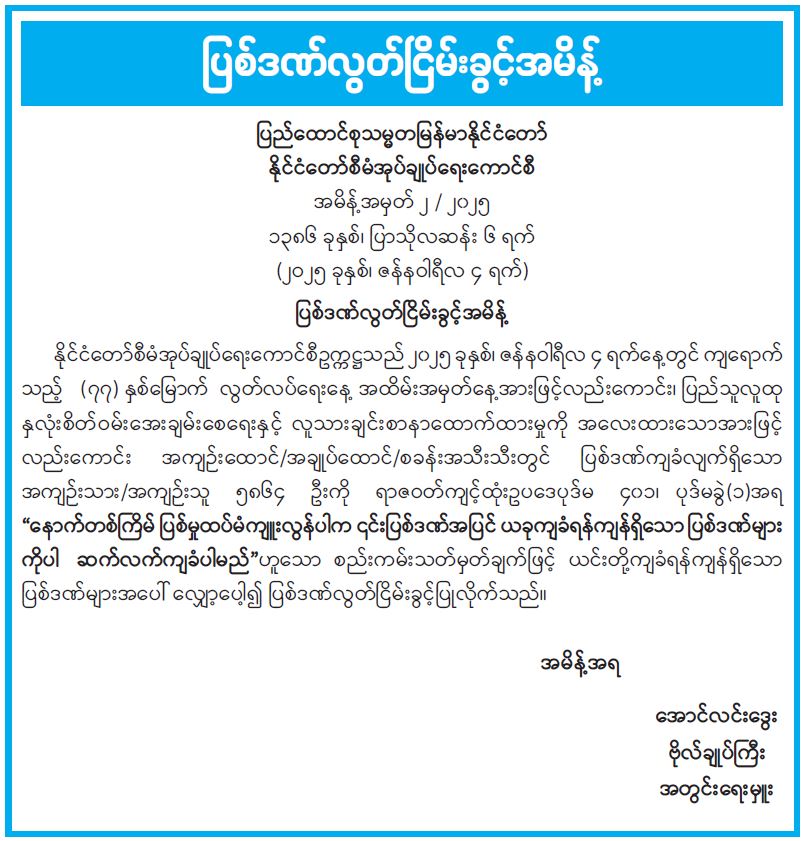 နိုင်ငံတော်အစိုးရ၏ ကြေညာချက်များ