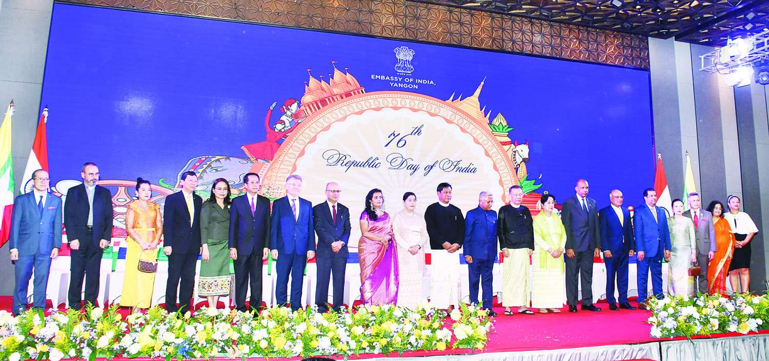 ထို့နောက် ဒုတိယဝန်ကြီးချုပ်နှင့် ပြည်ထောင်စုဝန်ကြီး ဗိုလ်ချုပ်ကြီး တင်အောင်စန်းနှင့်ဇနီး၊ မြန်မာနိုင်ငံဆိုင်ရာ အိန္ဒိယနိုင်ငံသံအမတ်ကြီး H.E.Mr.Abhay Thakurနှင့် ဇနီးတို့သည် အိန္ဒိယသမ္မတနိုင်ငံ၏ (၇၆) နှစ်မြောက် အမျိုးသားနေ့အထိမ်းအမှတ် ကိတ်မုန့်ကို လှီးဖြတ်ပေးကြသည်။