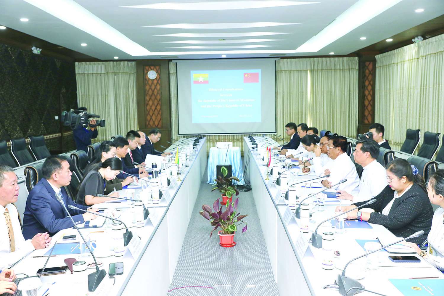 မြန်မာ-တရုတ် နှစ်နိုင်ငံဆွေးနွေးပွဲကို ယနေ့မွန်းလွဲ ၂ နာရီတွင် နေပြည်တော်ရှိ နိုင်ငံခြားရေးဝန်ကြီးဌာန၌ကျင်းပရာ ဒုတိယဝန်ကြီးချုပ်နှင့် နိုင်ငံခြားရေးဝန်ကြီးဌာန ပြည်ထောင်စုဝန်ကြီး ဦးသန်းဆွေ၊ တရုတ်ပြည်သူ့သမ္မတနိုင်ငံ၊ ပြည်သူ့လုံခြုံရေးဝန်ကြီးဌာန လက်ထောက်ဝန်ကြီး မစ္စတာလျှိုကျုံးရီ၊ မြန်မာနိုင်ငံဆိုင်ရာ တရုတ်သံအမတ်ကြီး မစ္စမာကျားတို့ တက်ရောက်ကြသည်။