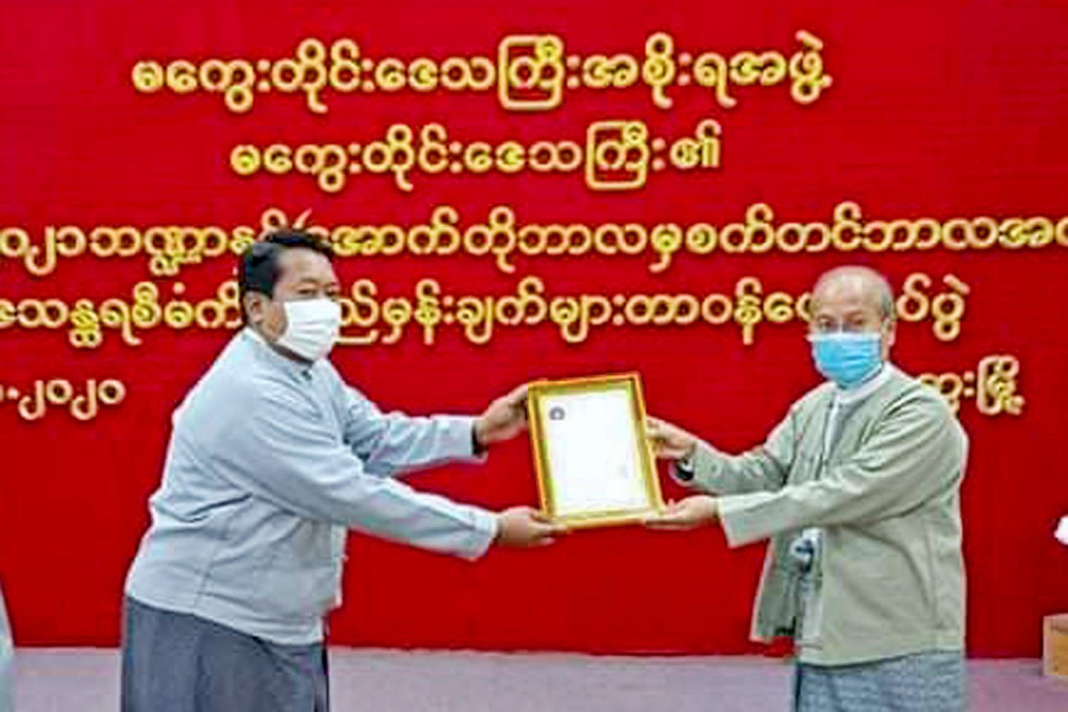 မကွေးတိုင်းဒေသကြီးအတွင်း ကိုဗစ်-၁၉ ရောဂါကာကွယ်ထိန်းချုပ် ကုသရေးဆိုင်ရာ လုပ်ငန်းများတွင် အသုံးပြုနိုင်ရန် အတွက် ယနေ့နံနက်ပိုင်းက တိုင်းဒေသကြီး ဝန်ကြီးချုပ် ဒေါက်တာ အောင်မိုးညိုထံ မကွေးတိုင်းဒေသကြီး ပတ်ဝန်းကျင် ထိန်းသိမ်း ရေးဦးစီးဌာနက တိုင်းဒေသကြီးအစိုးရအဖွဲ့ရုံး အစည်းအဝေးခန်းမ မှာ လှူဒါန်း ပေးအပ်ခဲ့ကြောင်း သိရသည်။