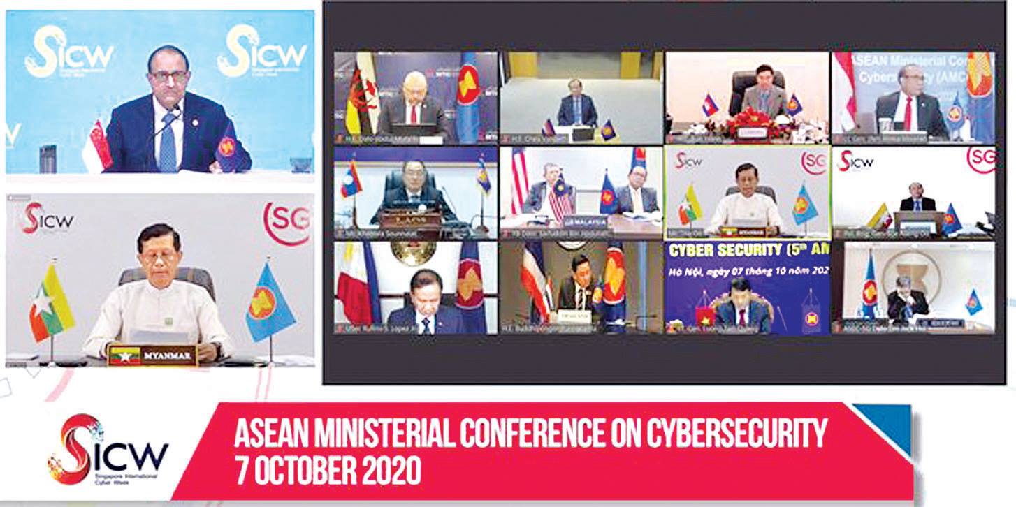 (၅) ကြိမ်မြောက် ASEAN Ministerial Conference on Cybersecurity နှင့် Singapore International Cyber Week (SICW) များကို Video Conferencing စနစ်ဖြင့် ကျင်းပရာ အောက်တိုဘာ ၆ ရက်က Singapore International Cyber Week ဖွင့်ပွဲ အခမ်းအနားနှင့် အောက်တိုဘာ ၇ ရက်တွင် ကျင်းပသည့် ASEAN Ministerial Conference on Cyber-security ဖွင့်ပွဲအခမ်းအနားများသို့ ပို့ဆောင်ရေးနှင့် ဆက်သွယ်ရေး ဝန်ကြီးဌာန ဒုတိယဝန်ကြီး ဦးသာဦး တက်ရောက်ခဲ့ပြီး ဒေသတွင်း ဆိုက်ဘာလုံခြုံရေးဆိုင်ရာ ပူးပေါင်း ဆောင်ရွက်ရေးကိစ္စများ၊ Rule-based Regional Norm အဖြစ် သတ်မှတ်နိုင်ရေး ကိစ္စရပ်များနှင့် စပ်လျဉ်း၍ မြန်မာ နိုင်ငံမှ ဆောင်ရွက်နေမှု အခြေအနေများနှင့် ဆက်လက်ဆောင် ရွက်သွားမည့် လုပ်ငန်းစဉ်များ အား အခြား ASEAN နိုင်ငံများမှ ဝန်ကြီးများ၊ တာဝန်ရှိသူများနှင့်အတူ မျှဝေ ဆွေးနွေးခဲ့ကြ သည်။