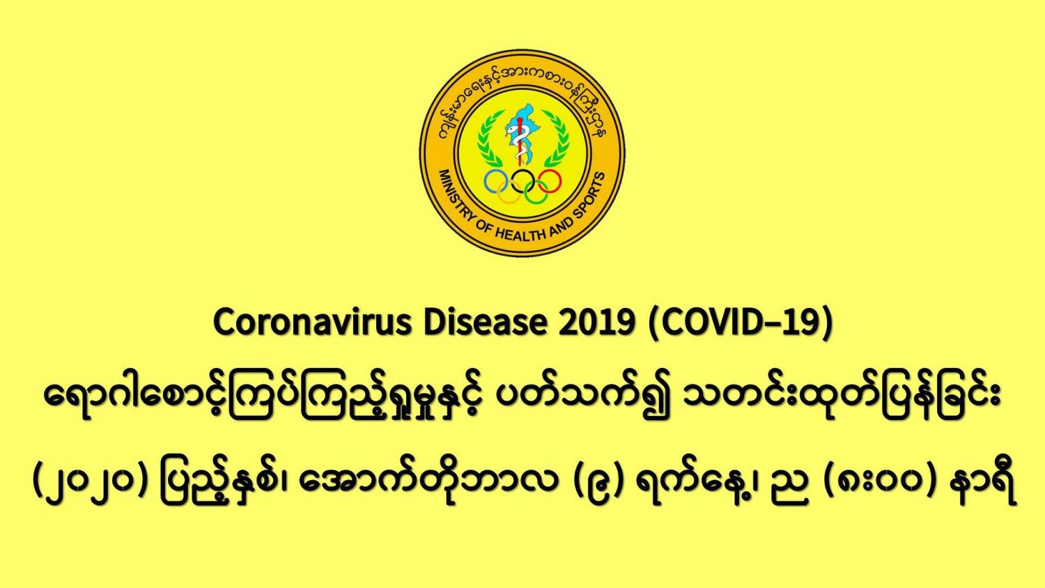 (၈-၁၀-၂၀၂၀) ရက်နေ့၊ ည (၈:၀၀)နာရီမှ (၉-၁၀-၂၀၂၀) ရက်နေ့၊ ည (၈:၀၀) နာရီ အတွင်းဓာတ်ခွဲနမူနာ စုစုပေါင်း (၁၅,၃၀၁)ခုအား စစ်ဆေးပြီးစီးခဲ့ရာ COVID-19 ရောဂါ ဓာတ်ခွဲ အတည်ပြု လူနာသစ် (၁,၄၆၁)ဦး တွေ့ရှိရပါသည်။