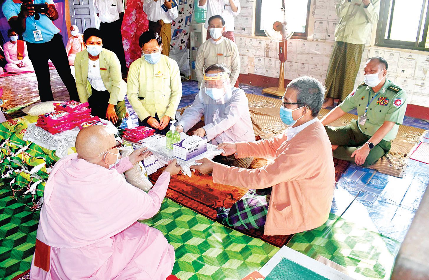 ကိုဗစ်-၁၉ ရောဂါကာလ စစ်တွေမြို့နယ်အတွင်းရှိ သံဃာတော်များနှင့် သီလရှင်များ အေးချမ်းသာယာစွာဖြင့် သာသနာ့တာဝန်များကို ထမ်းဆောင်နိုင်ရန် ရခိုင်ပြည်နယ်အစိုးရအဖွဲ့မှ ဆန်နှင့် လှူဖွယ်ပစ္စည်းများကို လှူဒါန်းပေးလျက်ရှိရာ စစ်တွေမြို့ ကျောင်းတိုက်များရှိ သံဃာတော်များအား ဆန်အိတ် တစ်ထောင်ကိုလည်း လှူဒါန်းကြောင်း သိရသည်။