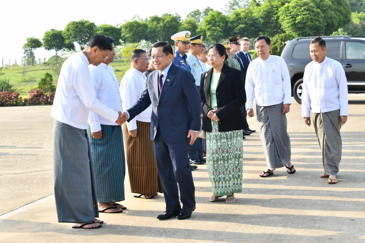 နိုင်ငံတော်စီမံအုပ်ချုပ်ရေးကောင်စီဥက္ကဋ္ဌ နိုင်ငံတော်ဝန်ကြီးချုပ်နှင့် ဇနီး ဦးဆောင်သည့် မြန်မာအဆင့်မြင့် ကိုယ်စားလှယ်အဖွဲ့အား ကောင်စီဒုတိယဥက္ကဋ္ဌ ဒုတိယဝန်ကြီးချုပ် ဒုတိယဗိုလ်ချုပ်မှူးကြီး စိုးဝင်းနှင့် ဇနီး ဒေါ်သန်းသန်းနွယ်၊ ကောင်စီအတွင်းရေးမှူး ဗိုလ်ချုပ်ကြီး အောင်လင်းဒွေးနှင့် ဇနီး၊ ကောင်စီအဖွဲ့ဝင်များ၊ ပြည်ထောင်စုဝန်ကြီးများ၊ နေပြည်တော်ကောင်စီဥက္ကဋ္ဌ၊ ကာကွယ်ရေးဦးစီးချုပ်ရုံးမှ အဆင့်မြင့်တပ်မတော်အရာရှိကြီးများနှင့် ဇနီးများ၊ နေပြည်တော်တိုင်းစစ်ဌာနချုပ်တိုင်းမှူး၊ မြန်မာနိုင်ငံဆိုင်ရာ ရုရှားဖက်ဒရေးရှင်းနိုင်ငံသံရုံး၊ စစ်သံရုံးတို့မှ တာဝန်ရှိသူများက လေဆိပ်၌ ပို့ဆောင်နှုတ်ဆက်ကြသည်။
