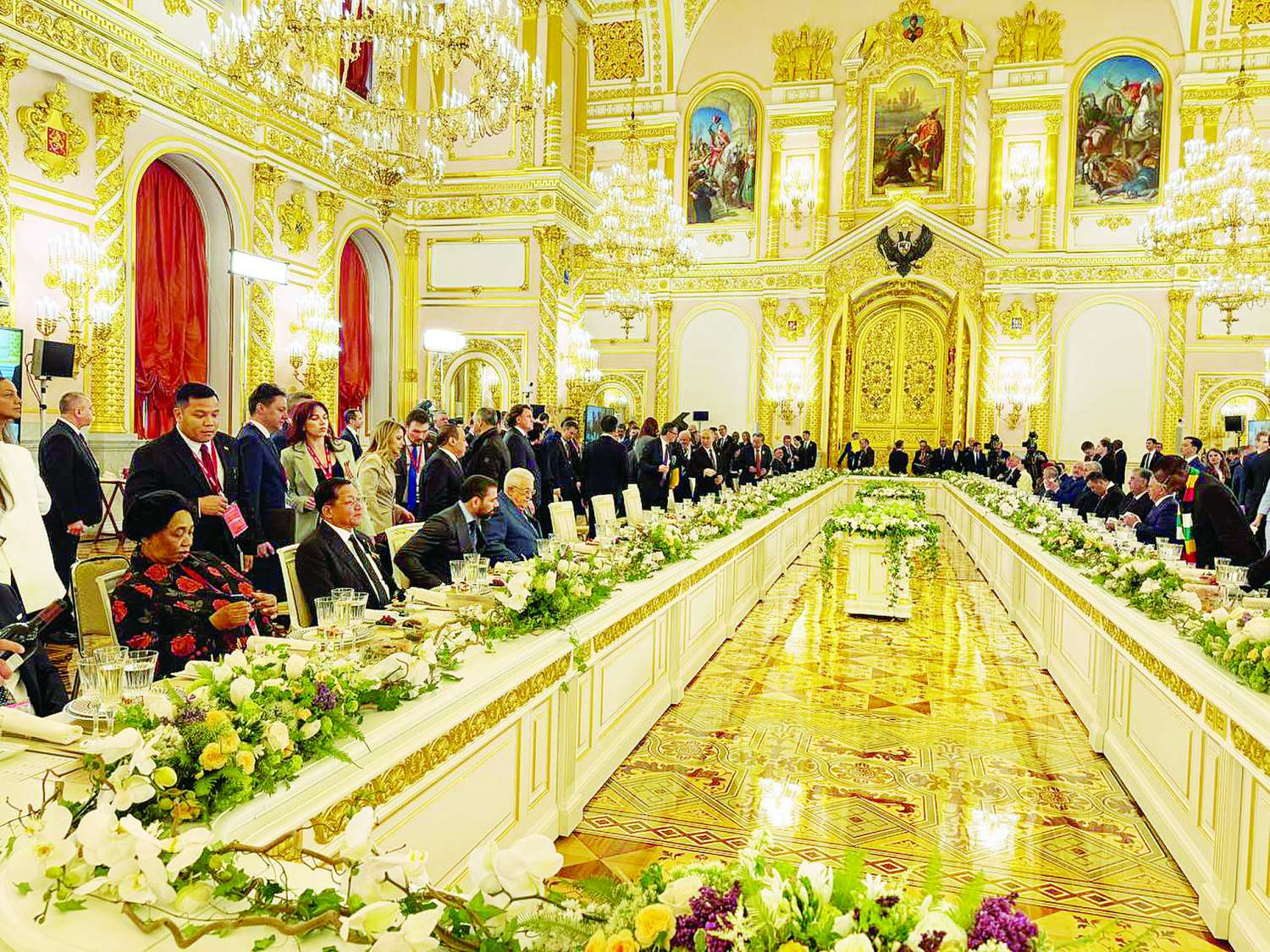ထို့နောက် နိုင်ငံတော်စီမံအုပ်ချုပ်ရေးကောင်စီဥက္ကဋ္ဌ နိုင်ငံတော်ဝန်ကြီးချုပ်နှင့် အခြားနိုင်ငံ့အကြီးအကဲများသည် ရုရှားဖက်ဒရေးရှင်းနိုင်ငံသမ္မတနှင့်အတူ Aldxandrovsky ခန်းမ၌ ညစာအတူတကွ သုံးဆောင်ကြသည်။