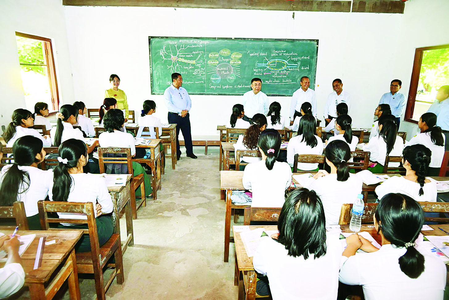 ထို့နောက် ပြည်ထောင်စုဝန်ကြီးသည် ကျောင်းဥပဓိကောင်းမွန်ရေး၊ ကျောင်းနှင့်ဝန်းကျင် သန့်ရှင်းသာယာလှပရေးနှင့် ကျောင်းအဆောက်အအုံ၊ စာသင်ဆောင်များကို လှည့်လည်ကြည့်ရှုစစ်ဆေး၍ လိုအပ်သည်များကို ဖြည့်ဆည်းဆောင်ရွက်ပေးသည်။