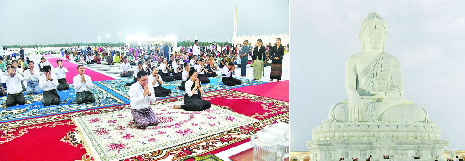 ဦးစွာ နိုင်ငံတော်စီမံအုပ်ချုပ်ရေးကောင်စီဥက္ကဋ္ဌ နိုင်ငံတော်ဝန်ကြီးချုပ်နှင့်ဇနီးတို့သည် မာရဝိဇယဗုဒ္ဓရုပ်ပွားတော်မြတ်ကြီးအား ပန်း၊ ရေချမ်းနှင့်ဆီမီးများ ကပ်လှူပူဇော်ပြီး ဖူးမြော်ကြည်ညိုကြသည်။