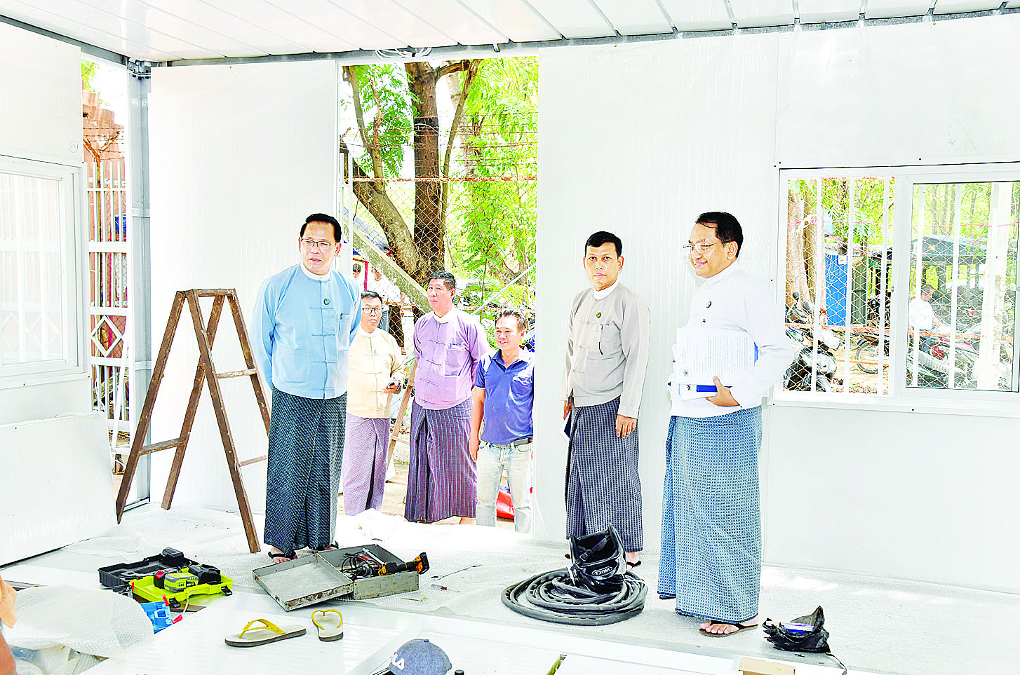 ပြန်ကြားရေးဝန်ကြီးဌာန ဝန်ထမ်းများ နေထိုင်နိုင်ရန် Container House များ နေရာချထားမည့်မြေနေရာ၊ Prefabri-cated Office များ တပ်ဆင်နေမှုနှင့် တည်ဆောက်ထားသည့် ယာယီအဆောင်များ၌ ဝန်ထမ်းများ နေထိုင်နေမှုအခြေအနေများနှင့် စပ်လျဉ်း၍ ယနေ့နံနက်ပိုင်းတွင် ယာယီရှင်းလင်းဆောင်၌ ပြန်ကြားရေးဝန်ကြီးဌာန ပြည်ထောင်စုဝန်ကြီး ဦးမောင်မောင်အုန်းအား အမြဲတမ်းအတွင်းဝန် ဦးဝင်းကျော်အောင်က ရှင်းလင်းတင်ပြသည်။