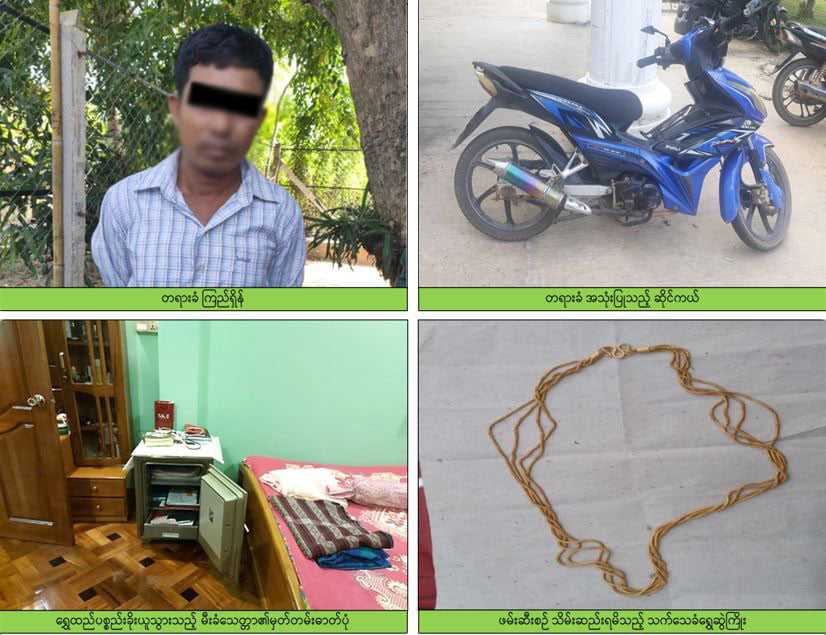 အဆိုပါ သတင်းထုတ်ပြန်ချက်တွင် နေပြည်တော်၊ ပုဗ္ဗသီရိမြို့နယ်၊ ညောင်ပင်ကြီးစု ကျေးရွာ သပြေလမ်းရှိ အလုပ်သမား၊ လူဝင်မှုကြီးကြပ်ရေးနှင့် ပြည်သူ့အင်အားဝန်ကြီးဌာနမှ ညွှန်မှူး၏ နေအိမ်ခြံဝင်းအတွင်း၌ အမျိုးသမီး ၁ ဦး ဒဏ်ရာများဖြင့် သေဆုံးနေကြောင်း သတင်းအရ စက်တင်ဘာ ၉ ရက် ည ၇ နာရီခန့်တွင် ပူးပေါင်းအဖွဲ့မှ သွားရောက်စစ်ဆေးရာ နေအိမ်ခြံဝင်းအတွင်း၌ ဇနီးဖြစ်သူ ဒေါ်မော်မော်လွင်စိုး(၅၂)နှစ်အား ဦးခေါင်းပေါက်ပြဲ/ ပြတ်ရှ ဒဏ်ရာများဖြင့် လဲကျသေဆုံးနေသည်ကို တွေ့ရှိခဲ့ပြီး အိပ်ခန်းအတွင်းရှိ မီးခံသေတ္တာအတွင်းမှ ရွှေထည်ပစ္စည်းများနှင့် ၎င်းကိုင်ဆောင်သည့် Samsung ဖုန်း ၁ လုံး (စုစုပေါင်း တန်ဖိုးငွေကျပ် သိန်း ၁၆၀ ခန့်)တို့ ပျောက်ဆုံးနေသည်ကို တွေ့ရှိခဲ့သဖြင့် ဥပဒေနှင့်အညီ အမှုဖွင့်စစ်ဆေး၍ တရားခံ ဖမ်းဆီးရမိရေးဆောင်ရွက်ခဲ့ကြောင်း။