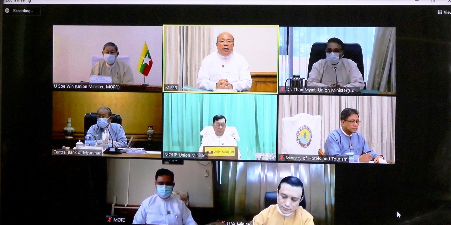 ကိုဗစ်-၁၉ ကြောင့် ဖြစ်ပေါ်လာနိုင်သည့် စီးပွားရေး သက်ရောက်မှုများအပေါ် ကုစားရေး လုပ်ငန်းကော်မတီ၏ အစည်းအဝေးအမှတ်စဉ် (၁၀/၂၀၂၀)ကို ယနေ့မွန်းလွဲ ၂ နာရီတွင် ရင်းနှီးမြှုပ်နှံမှုနှင့် နိုင်ငံခြားစီးပွား ဆက်သွယ်ရေး ဝန်ကြီးဌာန ရုံးအမှတ်(၁)တွင် ဗွီဒီယိုကွန်ဖရင့် စနစ်ဖြင့် ကျင်းပသည်။