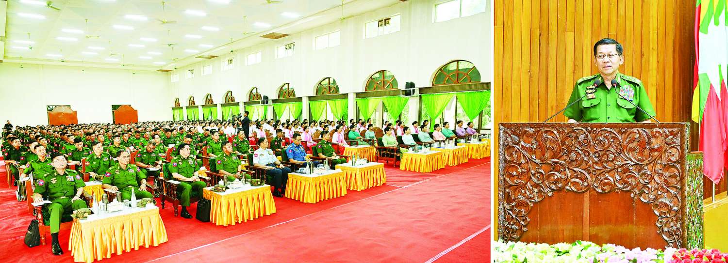 နိုင်ငံတော်စီမံအုပ်ချုပ်ရေးကောင်စီဥက္ကဋ္ဌ တပ်မတော်ကာကွယ်ရေးဦးစီးချုပ် ဗိုလ်ချုပ်မှူးကြီး မင်းအောင်လှိုင်သည် ယနေ့မွန်းလွဲပိုင်းတွင် တြိဂံဒေသတိုင်းစစ်ဌာနချုပ် ကျိုင်းတုံတပ်နယ်မှ အရာရှိ၊ စစ်သည်၊ မိသားစုဝင်များအား တိုင်းစစ်ဌာနချုပ် ပြည်ငြိမ်းအေးခန်းမ၌ တွေ့ဆုံအမှာစကားပြောကြားသည်။