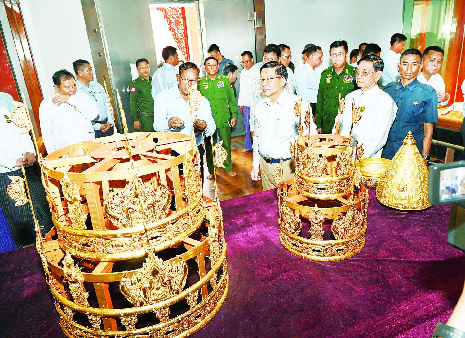 ဆက်လက်ပြီး နိုင်ငံတော်စီမံအုပ်ချုပ်ရေးကောင်စီဥက္ကဋ္ဌ နိုင်ငံတော်ဝန်ကြီးချုပ်နှင့် အဖွဲ့ဝင်များသည် မဟာမြတ်မုနိဘုရားကြီးနှင့် သာသနိကအဆောက်အဦများ ငလျင်ဒဏ်ကြောင့် ထိခိုက်ပျက်စီးခဲ့ရမှုများနှင့် ပြန်လည်ပြုပြင်တည်ဆောက်လျက်ရှိသည့်အခြေအနေများကို လိုက်လံကြည့်ရှုစစ်ဆေးပြီး တာဝန်ရှိသူများ၏ တင်ပြချက်များအပေါ် လိုအပ်သည်များ လမ်းညွှန်မှာကြားသည်။