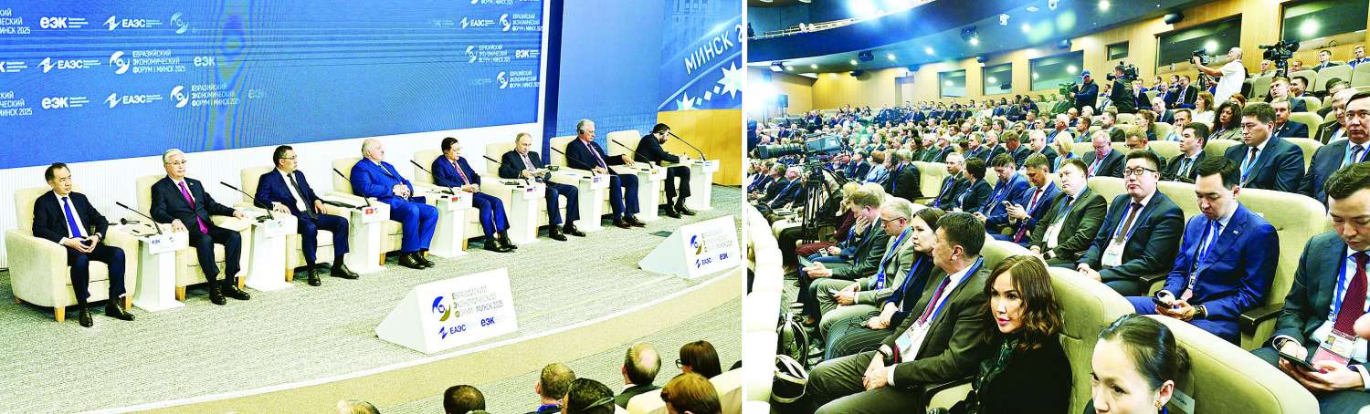 ထို့နောက် အခမ်းအနားတက်ရောက်လာကြသူများသည် Plenary Session Hall ၌ နေရာယူကြပြီး “ဥရောပ-အာရှ စီးပွားရေးပေါင်းစည်းညီညွတ်ရေး မဟာဗျူဟာ-ရလဒ်များနှင့် အလားအလာများ” (Strategy of the Eurasian Economic Integration: outcomes and prospects) ခေါင်းစဉ်ဖြင့် ဆွေးနွေးပွဲကို ကျင်းပပြုလုပ်ရာ EAEU ၏ အလှည့်ကျဥက္ကဋ္ဌဖြစ်သည့် ဘယ်လာရုစ်သမ္မတနိုင်ငံသမ္မတက မိန့်ခွန်းပြောကြားသည်။ ယင်းနောက် EAEU အဖွဲ့ဝင်နိုင်ငံများဖြစ်ကြသည့် အာမေးနီးယားနိုင်ငံ၊ ကာဇက်စတန်နိုင်ငံ၊ ကာဂျစ်စတန်နိုင်ငံ၊ ရုရှားဖက်ဒရေးရှင်းနိုင်ငံတို့မှ နိုင်ငံ့ခေါင်းဆောင်ကြီးများ၊ မိတ်ဖက်နိုင်ငံဖြစ်သည့် ကျူးဘားနိုင်ငံသမ္မတ၊ ဥရောပ-အာရှ စီးပွားရေးကော်မရှင် (EEC) ဘုတ်အဖွဲ့ဥက္ကဋ္ဌ၊ ပြည်ထောင်စုသမ္မတမြန်မာနိုင်ငံတော် နိုင်ငံတော်စီမံအုပ်ချုပ်ရေးကောင်စီဥက္ကဋ္ဌ နိုင်ငံတော်ဝန်ကြီးချုပ်နှင့် နီကွာရာဂွာသမ္မတ၏ အထူးကိုယ်စားလှယ်တို့က မိန့်ခွန်းများ အသီးသီးပြောကြားကြသည်။