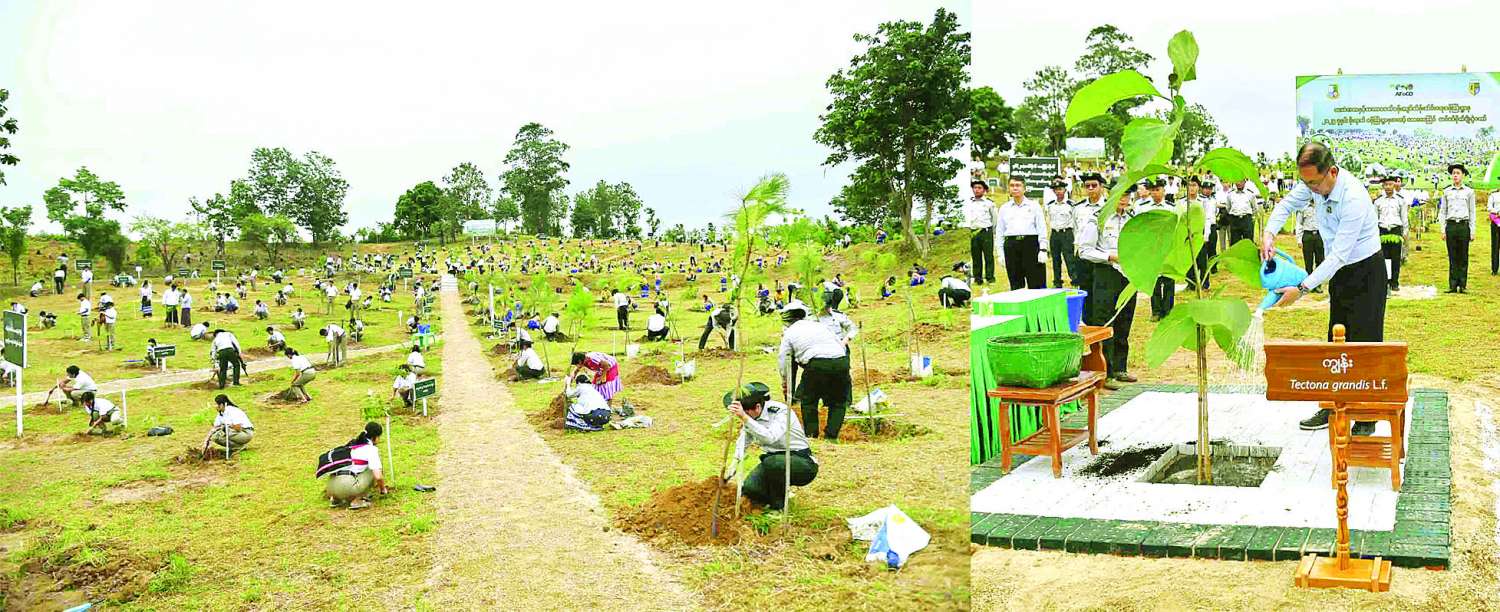 ထို့နောက် ပြည်ထောင်စုဝန်ကြီးသည် သစ်ပင်စိုက်ပျိုးပွဲသို့ တက်ရောက်လာသူများက ပျိုးပင်များ စိုက်ပျိုးနေမှုကို လှည့်လည်ကြည့်ရှုအားပေးသည်။ ယခုသစ်ပင်စိုက်ပျိုးပွဲတွင် ကျွန်း၊ ပျဉ်းကတိုး၊ ပိတောက်၊ တမလန်း၊ ပိတောက်နက် စသည့် တန်ဖိုးရှိ သစ်မျိုးများအပါအဝင် စုစုပေါင်းသစ်မျိုး ၂၁ မျိုးဖြင့် ပျိုးပင် ၁၅၀၀ ကို လူထုလှုပ်ရှားမှုအသွင်ဖြင့် စိုက်ပျိုးကြသည်။