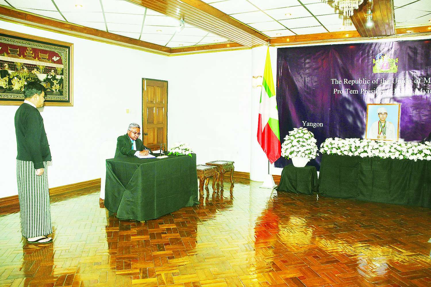 ယနေ့တွင် မြန်မာနိုင်ငံဆိုင်ရာ သံရုံးအကြီးအကဲများဖြစ်သည့် နီပေါသံအမတ်ကြီး H.E. Mr. Harishchandra Ghimire ၊ ထိုင်းသံအမတ်ကြီး H.E. Mr. Mogkol Visitstump၊ ဘင်္ဂလားဒေ့ရှ် သံအမတ်ကြီး Dr. Md. Monwar Hossain ၊ ဘရာဇီးသံအမတ်ကြီး H.E. Mr. Gustavo Rocha de Menezes ၊ အိန္ဒိယသံအမတ်ကြီး H.E. Mr. Abhay Thakur ၊ ယူအေအီးသံအမတ်ကြီး H.E. Mr. Mutaz Abdullah Abduljaleel Mohamed Al Faheem ၊ တရုတ်သံအမတ်ကြီး H.E. Ms. Ma Jia၊ ကမ္ဘောဒီးယား သံအမတ်ကြီး H.E. Mr. CHENG Manith ၊ လာအိုသံအမတ်ကြီး H.E. Mr. Bounphieng CHANTHAVONG နှင့် အစ္စရေးသံရုံးယာယီတာဝန်ခံ Mrs. Ruth Zakh ၊ တီမောလက်စ်တေ သံရုံးယာယီတာဝန်ခံ Mr. Olandino Rui de Andrade နှင့် ဟိုလီဆီးသံရုံး ယာယီတာဝန်ခံ၏ ကိုယ်စားလှယ် Fr. Hilary တို့က ဝမ်းနည်းကြောင်းမှတ်တမ်းစာအုပ်တွင် လာရောက်လက်မှတ်ရေးထိုးခဲ့ကြသည်။