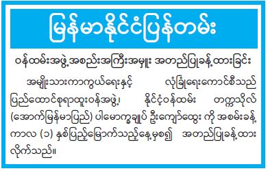 ဝန်ကြီးဌာန ကြေညာချက်များ