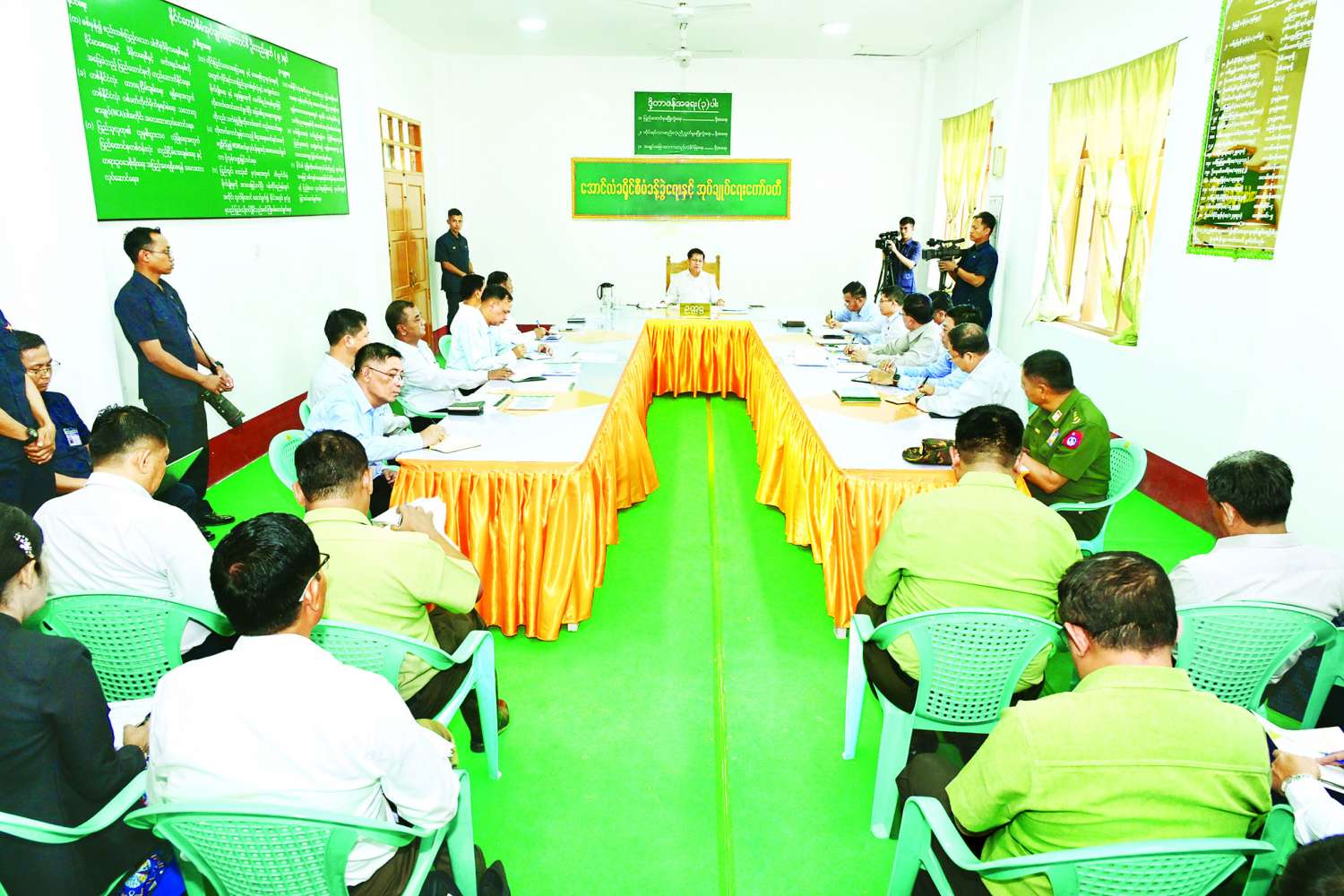 နိုင်ငံတော်လုံခြုံရေးနှင့် အေးချမ်းသာယာရေးကော်မရှင်ဥက္ကဋ္ဌ ဗိုလ်ချုပ်မှူးကြီး မင်းအောင်လှိုင်သည် ယနေ့နံနက်ပိုင်းတွင် ကော်မရှင်အတွင်းရေးမှူး၊ တွဲဖက်အမှုဆောင်ချုပ် ဗိုလ်ချုပ်ကြီး ရဲဝင်းဦး၊ ပြည်ထောင်စုဝန်ကြီးများ၊ ကာကွယ်ရေးဦးစီးချုပ်ရုံးမှ အဆင့်မြင့်တပ်မတော်အရာရှိကြီးများ၊ မကွေးတိုင်းဒေသကြီးဝန်ကြီးချုပ်၊ အလယ်ပိုင်းတိုင်းစစ်ဌာနချုပ် တိုင်းမှူးနှင့် တာဝန်ရှိသူများလိုက်ပါ၍ အောင်လံမြို့ရှိ အောင်လံခရိုင် အထွေထွေအုပ်ချုပ်ရေးမှူးရုံး အစည်းအဝေးခန်းမ၌ ဌာနဆိုင်ရာတာဝန်ရှိသူများနှင့် တွေ့ဆုံပြီး ဒေသဖွံ့ဖြိုးတိုးတက်ရေးလုပ်ငန်းများ ဆွေးနွေးမှာကြားသည်။