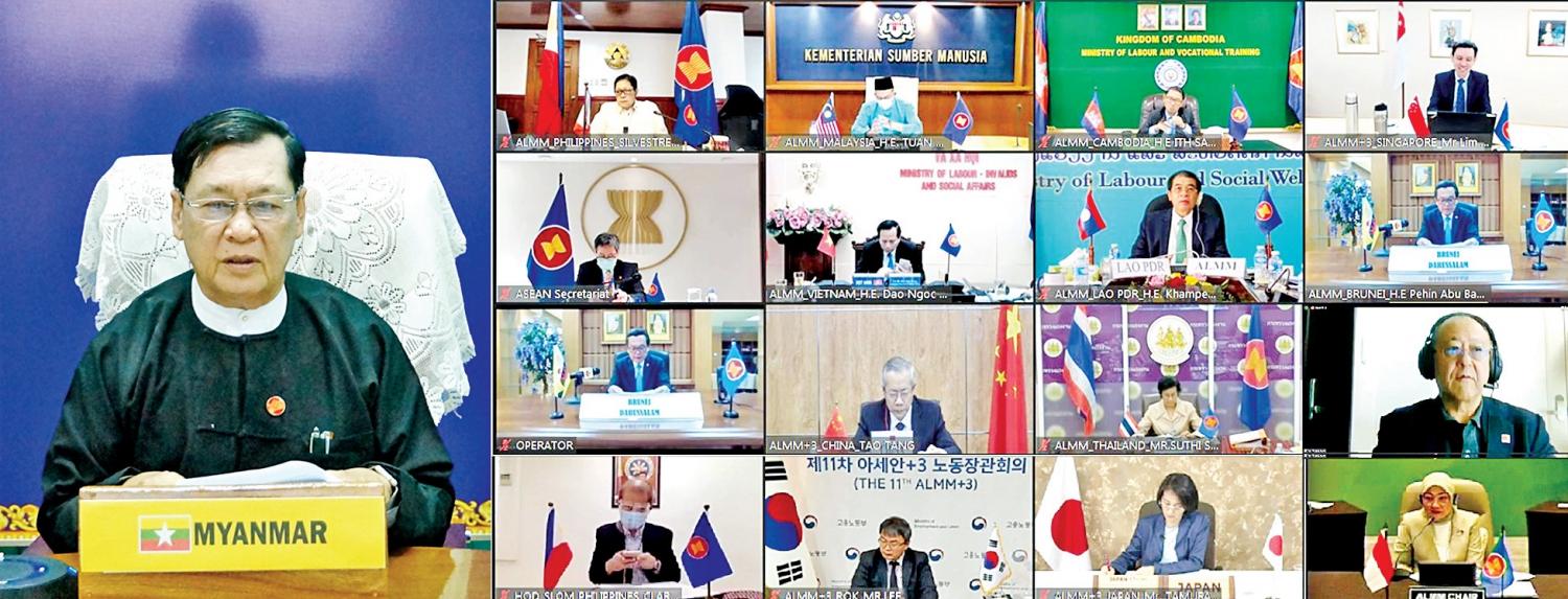 (၂၆) ကြိမ်မြောက် အာဆီယံ အလုပ်သမားဝန်ကြီးများ အစည်းအဝေးနှင့် (၁၁) ကြိမ်မြောက် အာဆီယံ+၃ အလုပ်သမားဝန်ကြီးများ အစည်းအဝေးကို ယနေ့နံနက် ၈ နာရီခွဲတွင် အင်ဒိုနီးရှားနိုင်ငံ လူ့စွမ်းအားအရင်းအမြစ် ဝန်ကြီးဌာန၌ ဗီဒီယိုကွန်ဖရင့်စနစ်ဖြင့် ကျင်းပသည်။