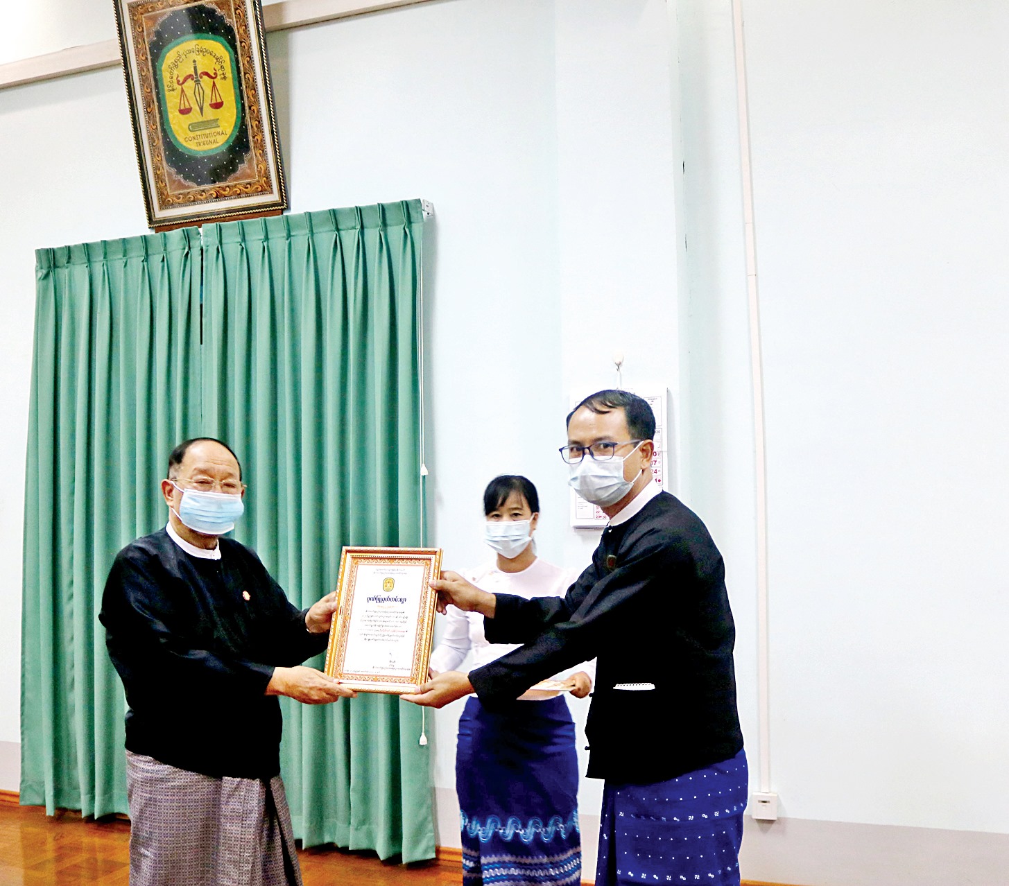 ထို့နောက် ခုံရုံးဥက္ကဋ္ဌက ဂုဏ်ပြုမှတ်တမ်းလွှာနှင့် ဂုဏ်ပြုဆုငွေများ ချီးမြှင့်ရာ တရားရေးဌာနမှ ဝန်ထမ်း များကိုယ်စား ညွှန်ကြားရေးမှူး ဦးမင်းသိမ်းကလည်းကောင်း၊ e-Government ဌာနမှ ဝန်ထမ်းများ ကိုယ်စား ညွှန်ကြားရေးမှူး ဦးညီညီလွင်ကလည်းကောင်း လက်ခံရယူခဲ့ကြောင်း သိရသည်။