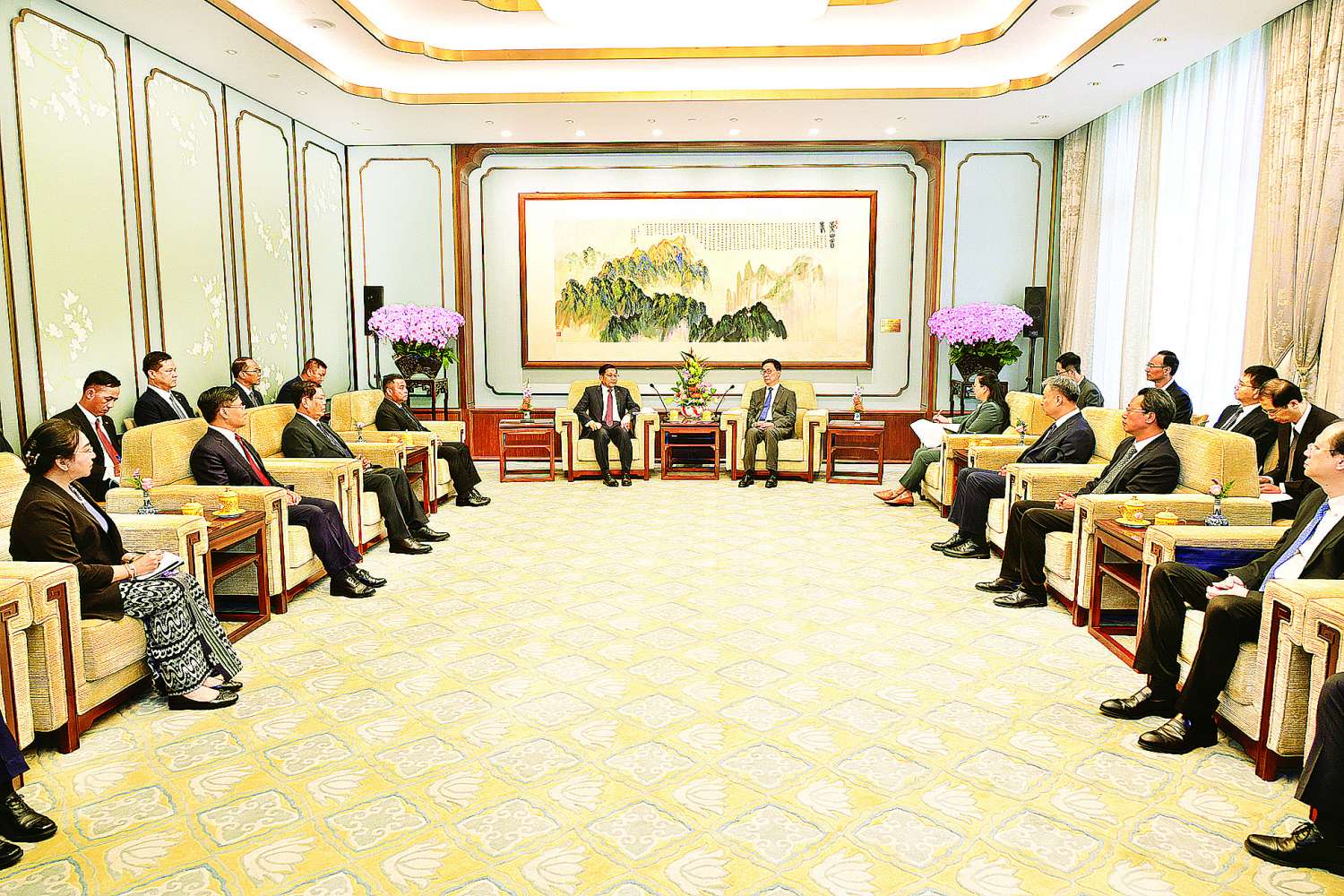 တရုတ်ပြည်သူ့သမ္မတနိုင်ငံ ပေကျင်းမြို့တွင် အလုပ်သဘောခရီးရောက်ရှိနေသည့် ပြည်ထောင်စုသမ္မတမြန်မာနိုင်ငံတော် ယာယီသမ္မတ နိုင်ငံတော်လုံခြုံရေးနှင့် အေးချမ်းသာယာရေးကော်မရှင်ဥက္ကဋ္ဌ ဗိုလ်ချုပ်မှူးကြီး မင်းအောင်လှိုင်သည် ယနေ့ဒေသစံတော်ချိန် မွန်းတည့် ၁၂ နာရီတွင် ကျောက်ယွိထိုင်နိုင်ငံတော်ဧည့်ဂေဟာ၌ တရုတ်ပြည်သူ့သမ္မတနိုင်ငံ၊ ဒုတိယသမ္မတ H.E. Mr. Han Zheng နှင့် တွေ့ဆုံဆွေးနွေးသည်။