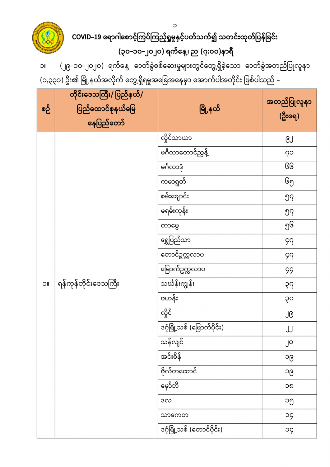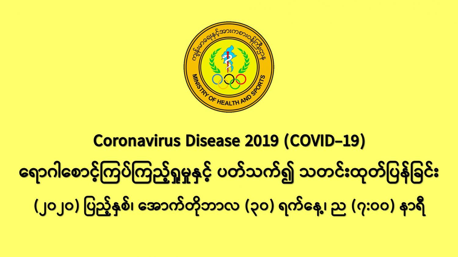 COVID-19 ရောဂါစောင့်ကြပ်ကြည့်ရှုမှုနှင့်ပတ်သက်၍ သတင်းထုတ်ပြန်ခြင်း(၃၀-၁၀-၂၀၂၀) ရက်နေ့၊ ည (၇:၀၀)နာရီ