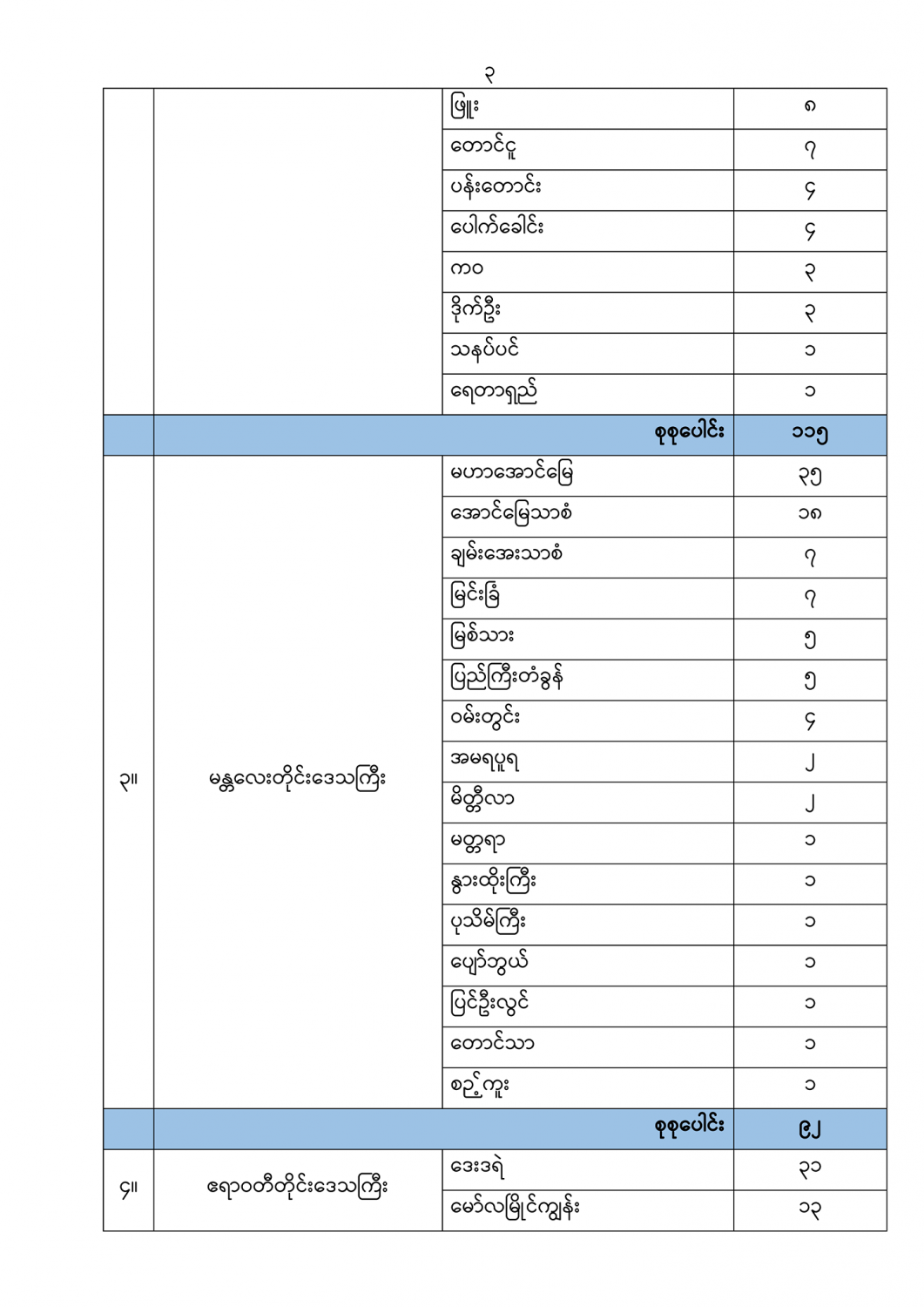 (၂၉-၁၀-၂၀၂၀) ရက်နေ့ ဓာတ်ခွဲစစ်ဆေးမှုများတွင်တွေ့ရှိခဲ့သော ဓာတ်ခွဲအတည်ပြုလူနာ (၁,၃၃၁) ဦး၏ မြို့နယ်အလိုက် တွေ့ရှိရမှုအခြေအနေမှာ အောက်ပါအတိုင်း ဖြစ်ပါသည်။