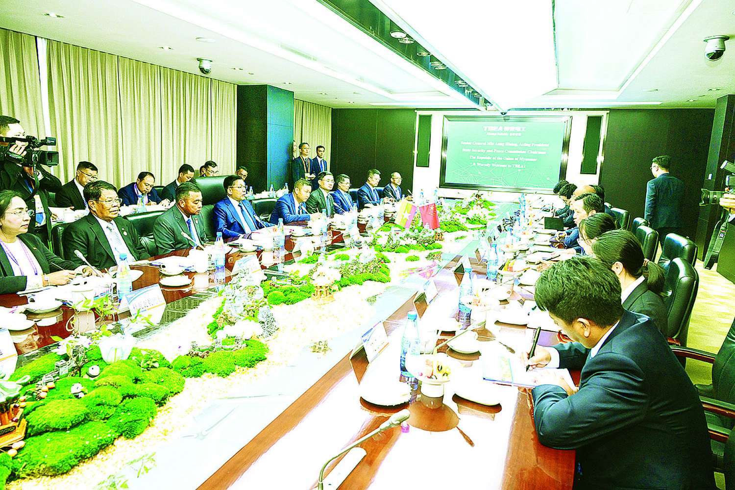 ယင်းနောက် မြန်မာနိုင်ငံတော်ယာယီသမ္မတ နိုင်ငံတော်လုံခြုံရေးနှင့် အေးချမ်းသာယာရေးကော်မရှင်ဥက္ကဋ္ဌက TBEA ကုမ္ပဏီဧည့်သည်တော်မှတ်တမ်းစာအုပ်တွင် မှတ်တမ်းတင်လက်မှတ်ရေးထိုးပြီး TBEA ကုမ္ပဏီဥက္ကဋ္ဌနှင့် လက်ဆောင်ပစ္စည်းများ အပြန်အလှန်ပေးအပ်ခဲ့ကြောင်း သတင်းရရှိသည်။
