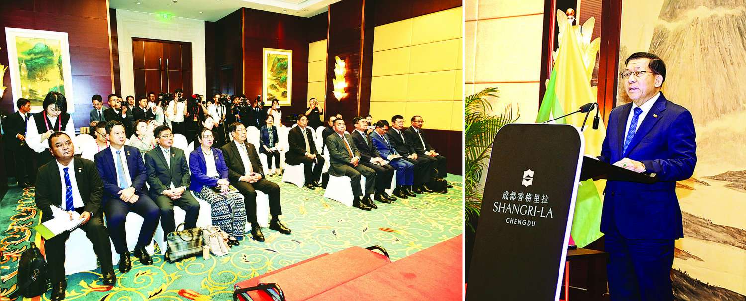 နောက်ထပ်ခရီးစဉ်အတွင်းမှာ နှစ်နိုင်ငံပူးပေါင်းဆောင်ရွက်ရေးနယ်ပယ်တွေ ဘယ်လိုဆောင်ရွက် နိုင်မလဲဆိုတာ ကျွန်တော်လေ့လာတဲ့အခါမှာ ကျွန်တော်တို့ နှစ်နိုင်ငံ ပူးပေါင်းဆောင်ရွက်ဖို့အတွက် အခွင့်အလမ်းတွေ များစွာရှိတာကို ကျွန်တော်တွေ့ပါတယ်။ နောက်တစ်ခါ စီးပွားရေးနဲ့ပတ်သက်ပြီး ရောင်းဝယ်ဖောက်ကားမှု၊ ကုန်သွယ်မှုနဲ့ပတ်သက်ပြီးတော့လည်း များစွာဆောင်ရွက်နိုင်တဲ့ အခွင့်အလမ်းတွေ များစွာရှိတယ်ဆိုတာလည်း နှစ်ဖက်လုံးမှာ ကျွန်တော်တွေ့ပါတယ်။ တီယန်ကျင်းမှာရော၊ စီချွမ်မြို့မှာရော၊ ဟာပင်းမှာရော၊ ချန်ဒူးမြို့မှာရော နှစ်နိုင်ငံမှာရှိတဲ့ ကုန်သည်ကြီးများနဲ့ ကျွန်တော်တွေ့ဆုံပြီးတော့ မြန်မာနိုင်ငံရဲ့ စီးပွားရေးအခွင့်အလမ်းနဲ့ပတ်သက်ပြီးတော့ ပွင့်ပွင့် လင်းလင်း ကျွန်တော်ပြောခဲ့ပါတယ်။ ကျွန်တော်နဲ့ အဖွဲ့ဝင်အဖြစ်ပါလာတဲ့ ဝန်ကြီးတွေကလည်း အကုန်ပြည့်ပြည့်စုံစုံ ရှင်းပြနိုင်ခဲ့ပါတယ်။ တရုတ်ကုန်သည်များကလည်း စိတ်ဝင်တစားနဲ့ ပါဝင်ဆွေးနွေးပြောကြားခဲ့မှုများ၊ လာရောက်တွေ့ဆုံ တက်ရောက်ခဲ့မှုများရှိလို့ရှိရင် ကျွန်တော်တို့နှစ်နိုင်ငံ စီးပွားရေးပူးပေါင်းဆောင်ရွက်မှု များစွာမျှော်လင့်ချက်ရှိနေကြတယ်ဆိုတာ ကျွန်တော်တို့ တွေ့ပါ တယ်။ ကျွန်တော် တရုတ်နိုင်ငံကို လာတာ ၁၂ ကြိမ်မြောက် ခရီးစဉ်ဖြစ်ပါတယ်။ ဒီ ၁၂ ကြိမ်မြောက် ခရီးစဉ်မှာ ဒီခရီးစဉ်က အောင်မြင်ဆုံးခရီးစဉ်တစ်ခုလို့ ကျွန်တော်ပြောလိုပါတယ်။ မြန်မာနိုင်ငံဟာ တရုတ်နိုင်ငံရဲ့ ယုံကြည်စိတ်ချရတဲ့ မိတ်ဆွေကောင်းနိုင်ငံတစ်နိုင်ငံဖြစ်ပါတယ်။ အိမ်နီးချင်းမိတ်ဆွေ နိုင်ငံဖြစ်ပါတယ်။ တရုတ်နိုင်ငံကလည်း ကျွန်တော်တို့နိုင်ငံရဲ့ ယုံကြည်စိတ်ချရတဲ့ မိတ်ဆွေအဖြစ် အမြဲတမ်းမျှော်လင့်ထားပါတယ်။ အခု ကျွန်တော်တို့လာတဲ့ခရီးစဉ်က နှစ်နိုင်ငံပူးပေါင်းဆောင်ရွက်ရေးနယ်ပယ်ကို ခိုင်ခိုင်မာမာနဲ့ ယုံယုံကြည်ကြည်လုပ်နိုင်ဖို့အတွက် အခွင့်အလမ်းတွေရခဲ့တယ်လို့ ကျွန်တော်ပြောချင်ပါတယ်။ တရုတ်နိုင်ငံအနေနဲ့လည်း မြန်မာနိုင်ငံနဲ့ ရဲရဲတင်းတင်း ပူးပေါင်းဆောင်ရွက်နိုင်မယ်လို့လည်း ကျွန်တော် မျှော်လင့်ပါတယ်။ အောင်မြင်မှုခရီးစဉ်တစ်ခုဖြစ်အောင် ခင်ဗျားတို့ တက်ရောက်လာကြသူများကလည်း အိမ်ဖြည့်ပေးတာဖြစ်ပါတယ်။ ကောင်းပါပြီ။ အားလုံးကို ကျေးဇူးတင်ပါတယ်။