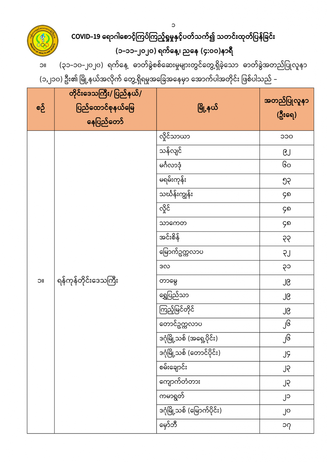 COVID-19 ရောဂါစောင့်ကြပ်ကြည့်ရှုမှုနှင့်ပတ်သက်၍ သတင်းထုတ်ပြန်ခြင်း (၁-၁၁-၂၀၂၀) ရက်နေ့၊ ညနေ (၄:၀၀)နာရီ