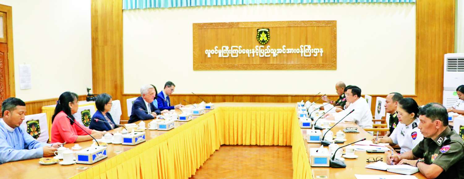တွေ့ဆုံစဉ် ရခိုင်ပြည်နယ်မှ နေရပ်စွန့်ခွာသူများ ပြန်လည်လက်ခံရေးအတွက် ဝန်ကြီးဌာနနှင့် UNDP-UNHCR တို့ သုံးပွင့်ဆိုင်နားလည်မှုစာချွန်လွှာ (MoU) လက်မှတ်ရေးထိုးဆောင်ရွက်နေမှု၊ ယင်းလုပ်ငန်းစဉ်များ အောင်မြင်စွာ ဆောင်ရွက်နိုင်ရေးအတွက် မြန်မာနိုင်ငံနှင့် ဘင်္ဂလားဒေ့ရှ်နိုင်ငံအစိုးရအချင်းချင်း ညှိနှိုင်းပူးပေါင်းဆောင်ရွက်နေမှု၊ ရခိုင်ပြည်နယ်အတွင်းရှိ အကြမ်းဖက်သောင်းကျန်းသူများ၏ နှောင့်ယှက်ဟန့်တားမှုကြောင့် ပြန်လည်လက်ခံရေးလုပ်ငန်းစဉ် နှောင့်နှေးကြန့်ကြာနေမှု၊ နယ်မြေဒေသလုံခြုံရေးအခြေအနေအရ ဘူးသီးတောင်၊ မောင်တောဒေသ၌ တာဝန်ထမ်းဆောင်နေသည့် UNHCR ဝန်ထမ်းများအား စစ်တွေမြို့နှင့် ရန်ကုန်မြို့သို့ ရွှေ့ပြောင်းနေထိုင်ခွင့်ပြုခဲ့မှုနှင့် နယ်မြေတည်ငြိမ်အေးချမ်းပါက သက်ဆိုင်ရာဒေသသို့ ပြန်လည်စေလွှတ်တာဝန်ထမ်းဆောင်မည့် အခြေအနေ၊ ဝန်ကြီးဌာနနှင့် UNDP-UNHCR ဆက်လက်လက်တွဲပူးပေါင်းပြီး ရခိုင်ပြည်နယ်မှ နေရပ်စွန့်ခွာသူများ ပြန်လည်လက်ခံရေးလုပ်ငန်းစဉ်အား ကြိုးပမ်းဆောင်ရွက်သွားမည့် အခြေအနေများနှင့် စပ်လျဉ်း၍ ရင်းနှီးပွင့်လင်းစွာ အမြင်ချင်းဖလှယ်ဆွေးနွေးကြသည်။