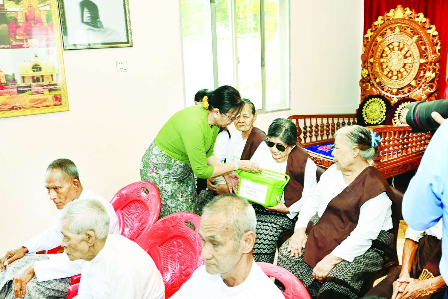 ၎င်းနောက် နိုင်ငံတော်ယာယီသမ္မတနိုင်ငံတော်လုံခြုံရေးနှင့် အေးချမ်းသာယာရေးကော်မရှင်ဥက္ကဋ္ဌနှင့် ဇနီးတို့က ဘက်စုံအလှူငွေများ ပေးအပ်လှူဒါန်းရာ ဂေါပကအဖွဲ့ဝင်များကလက်ခံရယူပြီး ဂုဏ်ပြုမှတ်တမ်းလွှာ ပြန်လည်ပေးအပ်သည်။