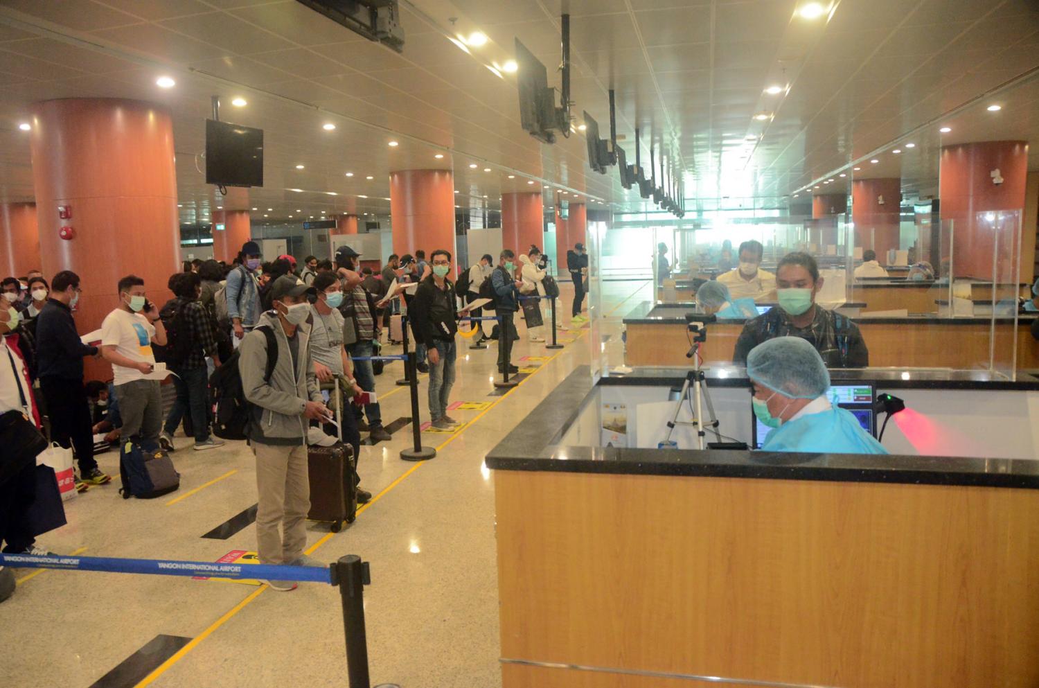 ၎င်းတို့ ရန်ကုန်အပြည်ပြည်ဆိုင်ရာလေဆိပ်သို့ ရောက်ရှိချိန်တွင် လူဝင်မှုကြီးကြပ် ရေး၊ ကျန်းမာရေး စိစစ်ရေး၊ သီးသန့်စီစဉ်ပေးသည့်နေရာ / သတ်မှတ်ဟိုတယ်များ၌ အသွားအလာ ကန့်သတ်မှု (၇)ရက် နှင့် နေအိမ်တွင် အသွားအလာကန့်သတ်မှု (၇) ရက် နေထိုင်စေရေးတို့ကို အလုပ်သမား၊ လူဝင်မှု ကြီးကြပ်ရေးနှင့်ပြည်သူ့အင်အားဝန်ကြီးဌာန၊ ကျန်းမာရေးနှင့် အားကစား ဝန်ကြီးဌာနနှင့် ရန်ကုန်တိုင်း ဒေသကြီးအစိုးရအဖွဲ့တို့မှ သက်ဆိုင်ရာအခန်းကဏ္ဍအလိုက် တာဝန်ယူ ဆောင်ရွက်ပေးခဲ့သည်။
